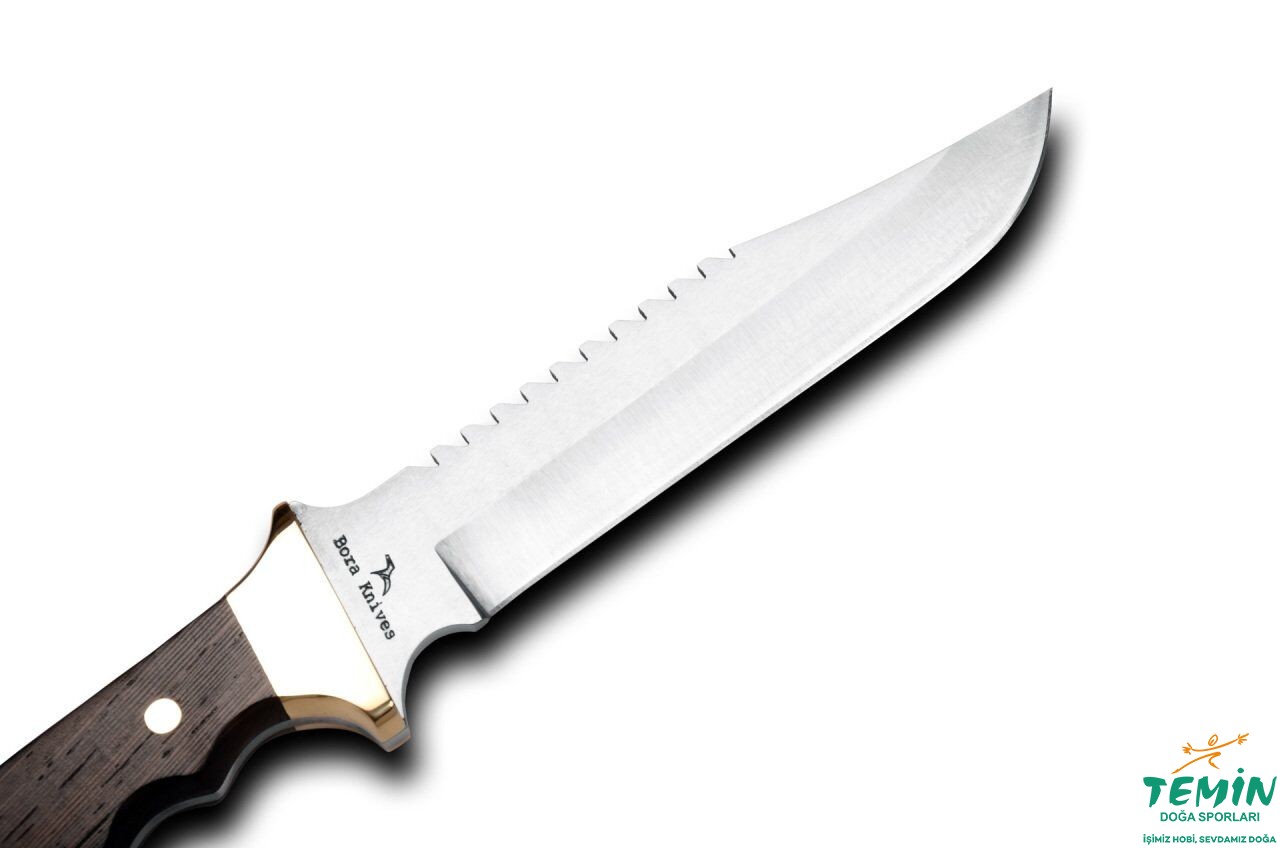 Ergonomik tutuşu ve her işe kullanım kolaylığı ile Özel Askeri Birliklerimizin tercih ettiği modellerimizden biridir. Sap kısmının en arkasındaki delik sayesinde bıçağınızı, istediğiniz yere bağlayabilirsiniz. Üzerindeki testere kısmı sert cisimleri vurarak kırmaya ve parçalamaya yarar.