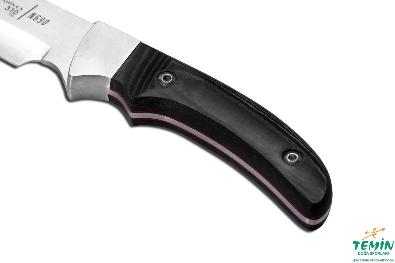 Bıçak üzerinde görünen bağlantı elemanları (cıvatalar) ve balçak, paslanmaz çelikten imal edilmiştir.
