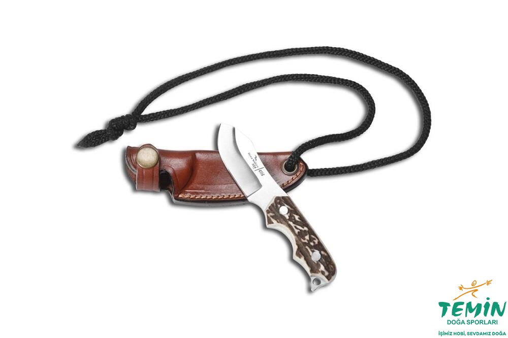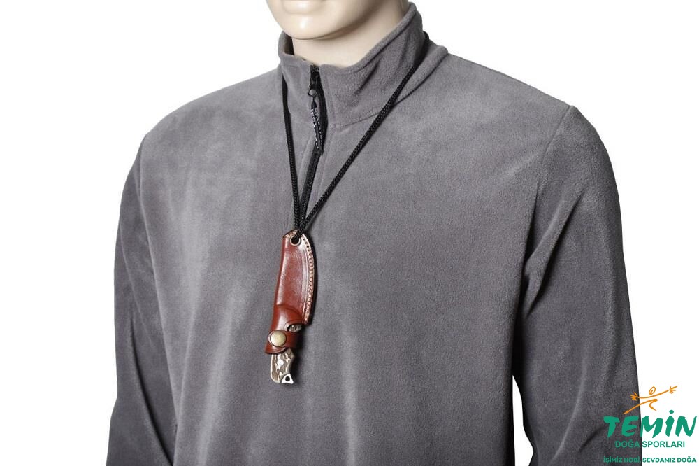 Bıçağımız; üzerinde kordon deliği ve kordon bulunan, 1. Sınıf deriden imal edilen çıtçıtlı tulum kılıfı (kahverengi) ile sunulmaktadır. Bu kılıfla bıçağı kolaylıkla boynunuzda taşıyabilirsiniz.