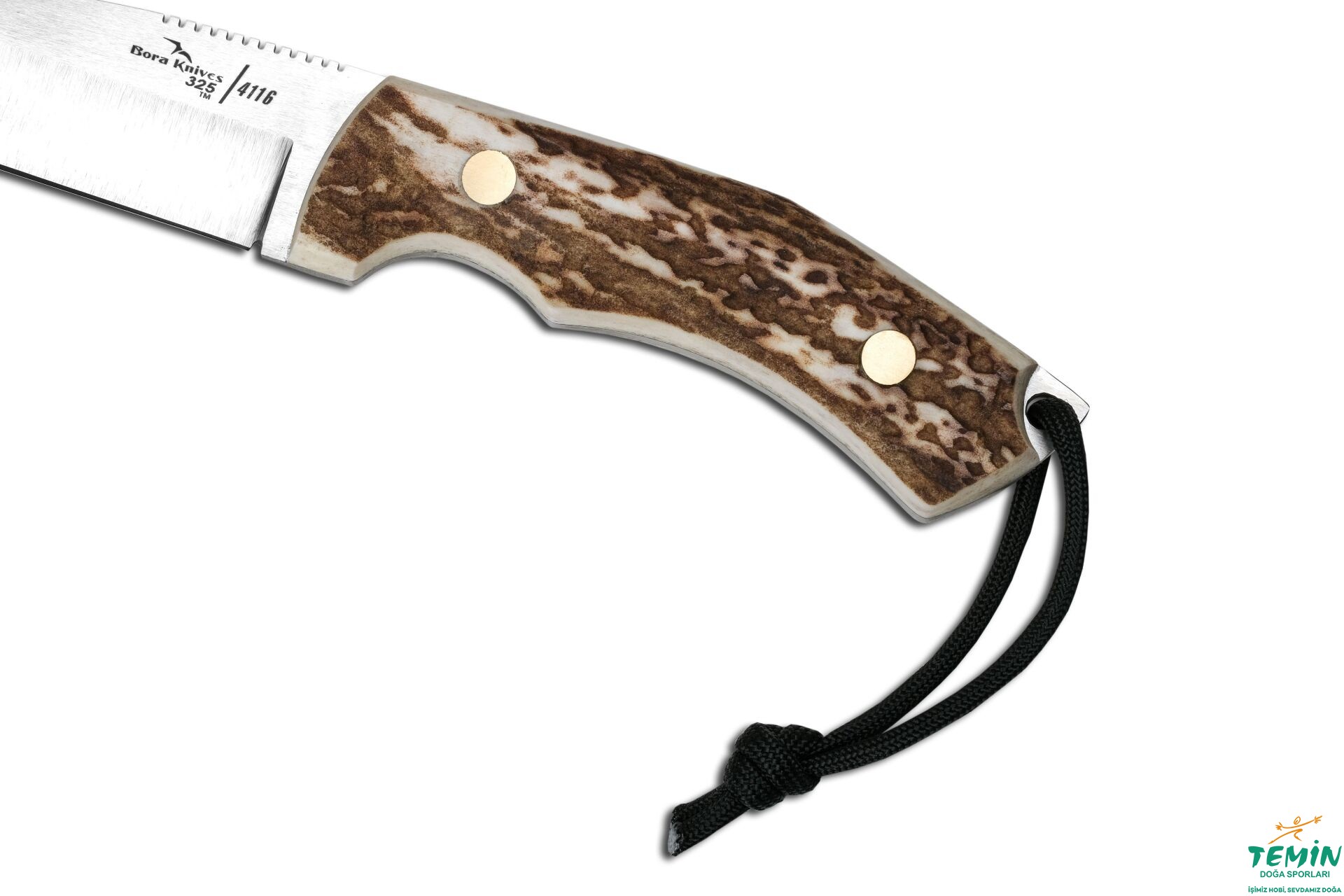 Sapında malzeme olarak Geyik Boynuzu kullanılmaktadır. Her sene üreme döneminden sonra geyiklerin boynuzları düşer, yerine yenisi çıkar. Sınırlı ölçülerde Orman Bakanlığımızdan satın alabildiğimiz, geyik boynuzu sert yapısı ile birlikte dayanıklılığında güçlü olmasından dolayı özellikle bıçakta görselliğe önem veren kullanıcılar tarafından tercih edilmektedir. Doğal yapısı nedeniyle her bıçak üzerinde farklı bir görsellik oluşturmaktadır.