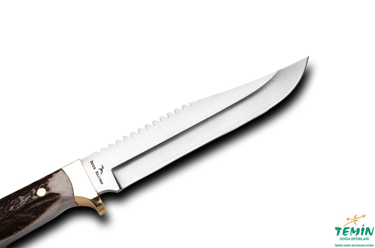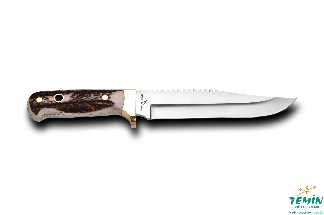 Diğer bowie modellerimizin özellikle zor kesimlerde ve işlemlerde kullanılması ile birlikte müşterilerimizden gelen talep üzerine sert cisimleri kırmak ve parçalamak için üzerine testere eklenmiştir. Askeri ve özel birliklerimizin de çok tercih ettiği bir modelimizdir. Sap kısmının en arkasındaki delik sayesinde bıçağınızı, istediğiniz yere bağlayabilirsiniz.