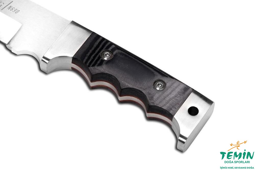 Bıçak üzerinde görünen bağlantı elemanları (cıvatalar) ve balçaklar, paslanmaz çelikten imal edilmiştir.