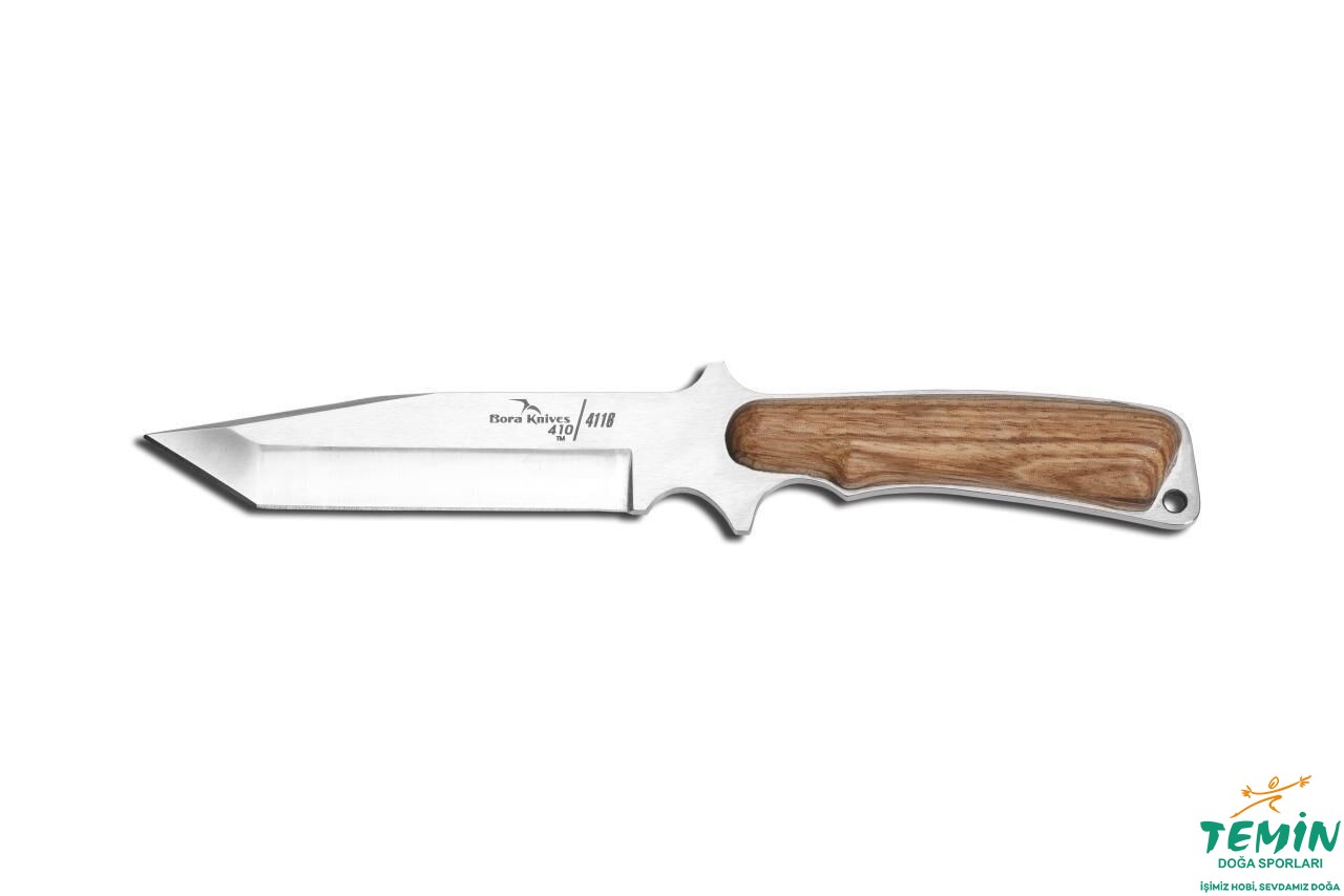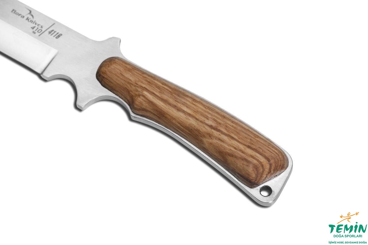Sap kısmında gizli perçin kullanılmıştır. İçbükey (hollow) ağız açımıyla keskin ve tanto uç yapısıyla (Bkz. https://www.boraknives.com.tr/sayfa/uc-yapisi) dayanıklı kılınmıştır. Bütünleşik koruyucu tırnaklar son derece güvenli kullanım sağlamaktadır. Kordon deliğinin (lanyard hole) bulunduğu uzatılmış kuyruğu (extended tang), vurup parçalama amaçlı kullanıma uygundur. Yuvarlak hatlara sahip olan ve yeterli yanal destek sunan sap malzemesi, bıçak kuyruğunu (kapsüllenmiş-encapsulated tarzın aksine) içeriden takip eder niteliktedir. Böylelikle daha hafif, kırılmalara karşı daha korunaklı ve yanal desteğe katkı sunan bir sap yapısı elde edilmiştir.