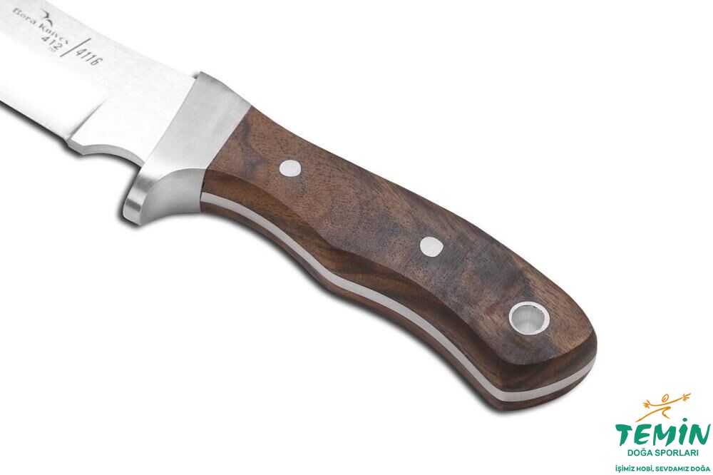 Bora Bıçakları olarak, ürünlerimizde A.I.S.I’nin (Amerikan Demir ve Çelik Sanayicileri) ve TSEK’nun av bıçağı üretiminde norm olarak kabul ettiği 440-A, 440-B, 440-C, N690, N695 standartlarına uygun paslanmaz çelik kullanmaktayız. Kullandığımız bu çeliğin sertlik derecesi, dünyada A sınıfı çelik sertlik derecesi olarak kabul edilmekte ve 57-60 RHC (Rockwell) arasında değişmektedir.