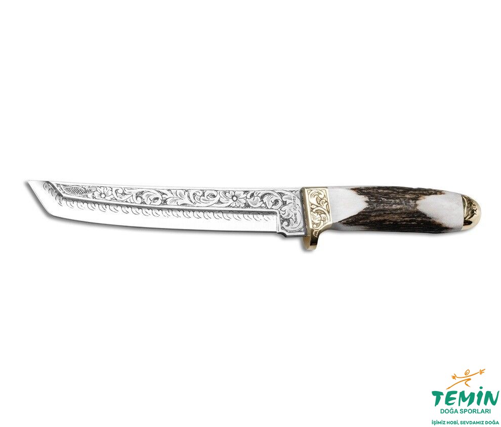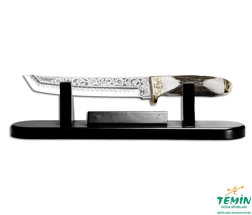 Sapında malzeme olarak Geyik Boynuzu kullanılmaktadır. Her sene üreme döneminden sonra geyiklerin boynuzları düşer, yerine yenisi çıkar. Sınırlı ölçülerde Orman Bakanlığımızdan satın alabildiğimiz, geyik boynuzu sert yapısı ile birlikte dayanıklılığında güçlü olmasından dolayı özellikle bıçakta görselliğe önem veren kullanıcılar tarafından tercih edilmektedir. Doğal yapısı nedeniyle her bıçak üzerinde farklı bir görsellik oluşturmaktadır.