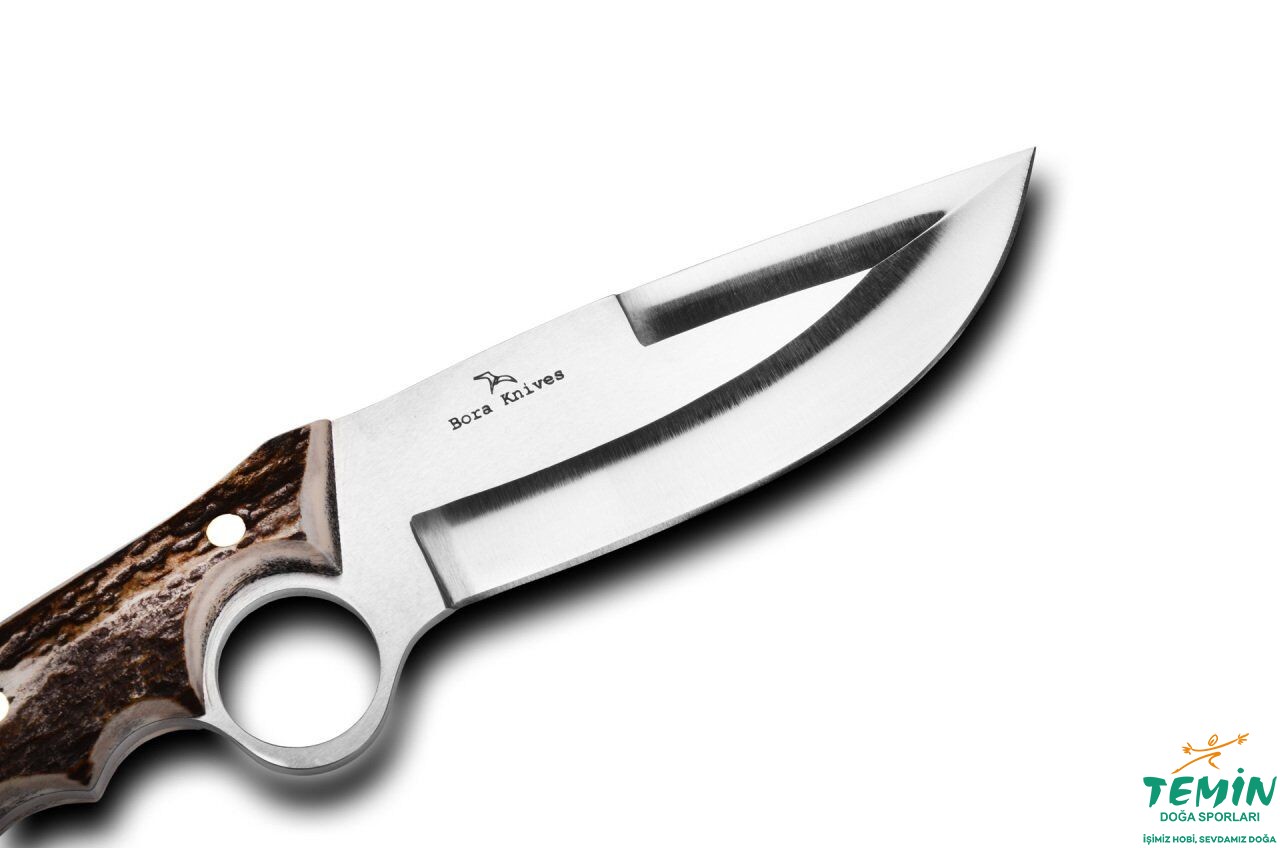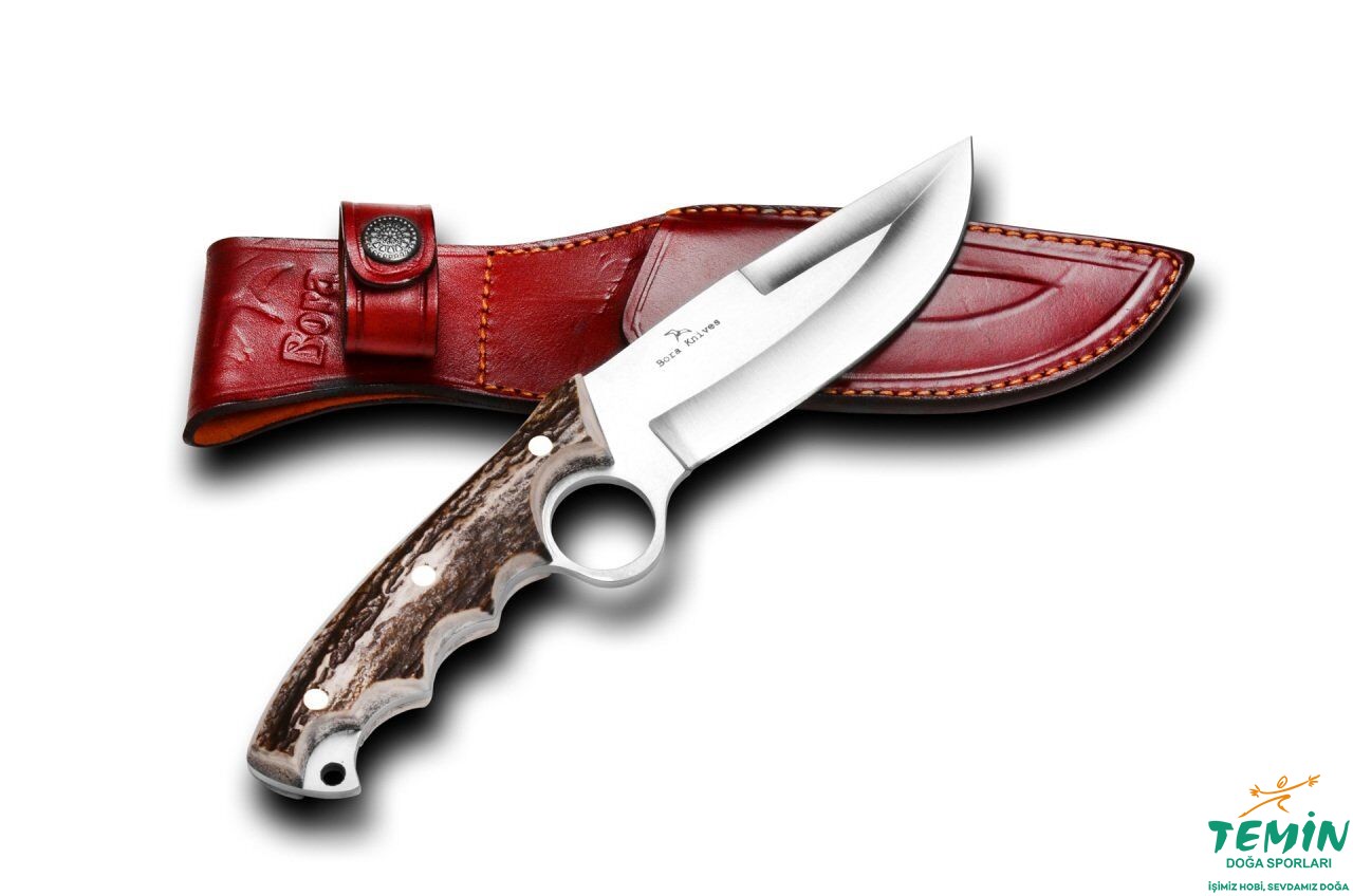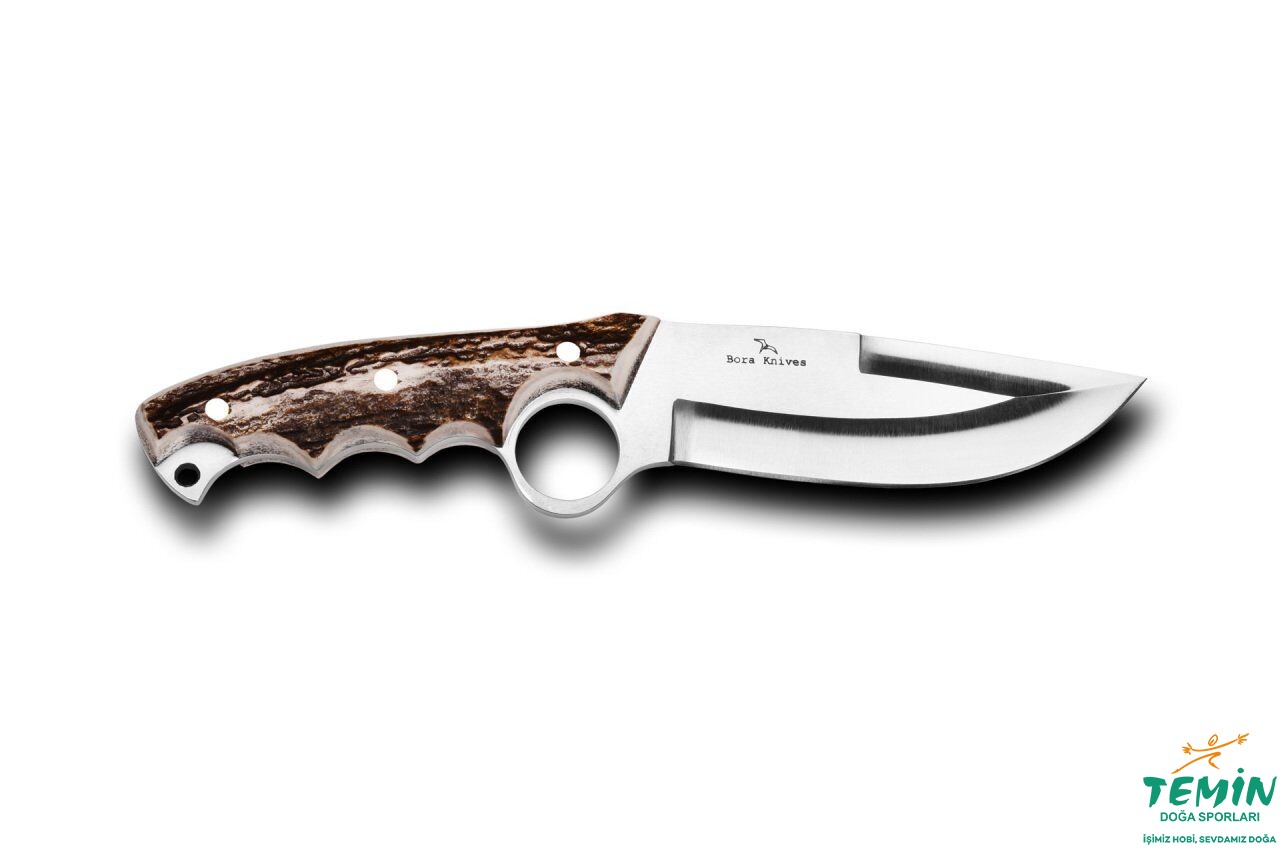 2009 yılında, firma ortaklarından Tolga BORA tarafından tasarımı yapılmış 500’lü seriler arasında en çok satan modellerimizden biridir. El ergonomikliğinin yanında işaret parmağınızı da açılmış olan delikten geçirmek sureti ile güvenli bir tutuş sağlamaktadır. Sap kısmının arka bölümünde açık bırakılan çelik kısmı ile sert cisimlere vurup parçalayabilirsiniz. Aynı zamanda buradaki delik sayesinde bıçağınızı, istediğiniz yere bağlayabilirsiniz. Avcıların ve kampçıların tercih ettiği bir modeldir.