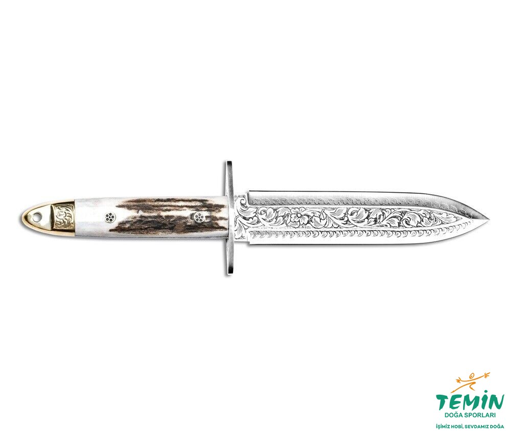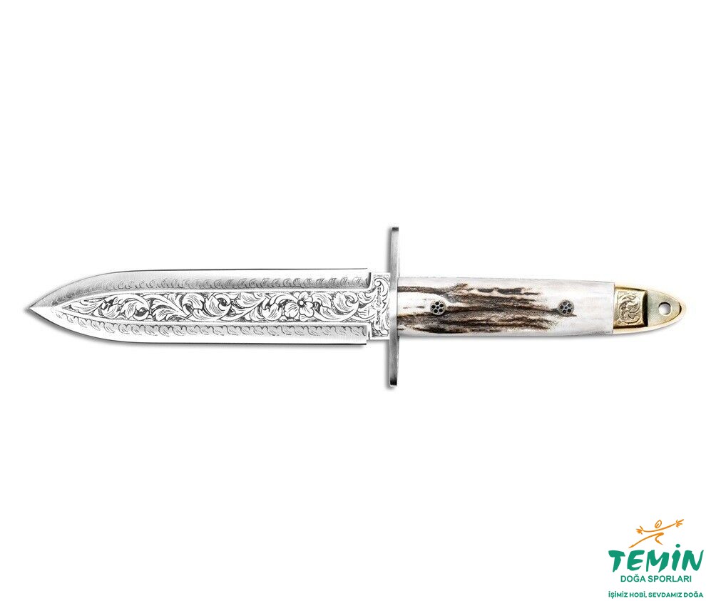 Firmamızın kuruluşundan itibaren birlikte çalıştığımız, atölye şefimiz Erdal Tabak tarafından tasarlanmış, özellikle yurt dışına en çok satmış olduğumuz modeldir. Birçok film ve dizilerde de kullanılan bu modelimiz, 440-B den yapılan çift taraflı gard sayesinde kullanımda güvenlik sağlamaktadır. Çift taraflı keskinlik sağlamasından dolayı askeri birliklerin de tercih ettiği bir modelimizdir.