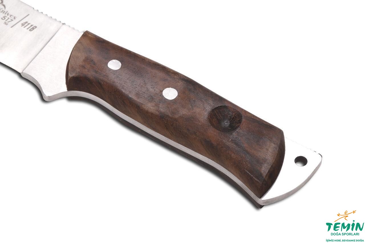 Bıçağın ceviz ağacından sap malzemesi bulunmaktadır. Bıçak kabzası için uygun olan doğal malzemeler içinde yer alan ceviz, görsel ve dokunsal zenginliğiyle yüzyıllardır -mobilyadan döşemeye kadar- hayatımızdadır. Kabzalarda olduğu gibi dipçik yapımında da tercih edilen ceviz, takım oluşturmak için de aranan ve hem yaygın hem saygın olmayı başarabilen ender malzemelerdendir.