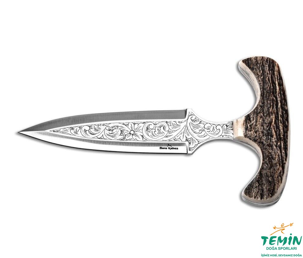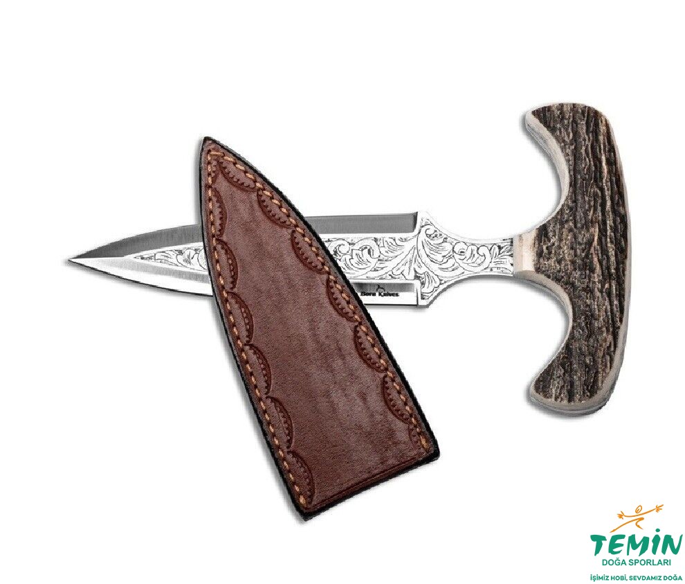 Bıçağın sap malzemesi olarak ''Geyik Boynuzu'' kullanılmıştır. Her sene üreme döneminden sonra geyiklerin boynuzları düşer ve yenisi çıkar. Orman Bakanlığımızdan sınırlı sayıda satın aldığımız geyik boynuzu, güçlü, sert ve dayanıklı yapıdadır. Doğal yapısı gereği her bıçak üzerinde farklı desen ve doku oluşturmaktadır. Bu özelliği ile son derece iyi kavrama imkânı sunan geyik boynuzu, görselliğe önem veren kullanıcılar tarafından da tercih edilmektedir.