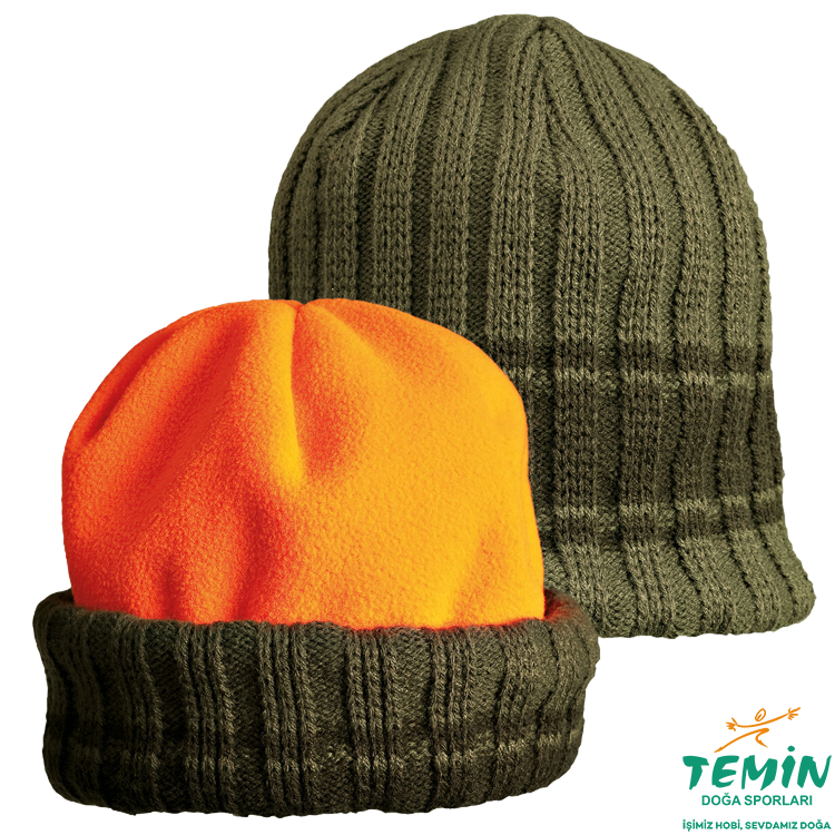 POLARFLEECE soğuk havalar için yeşil ve turuncu renkte çift taraflı örgü bere