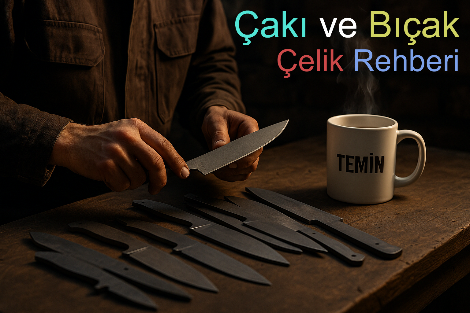 Bora Bıçakları, Süleyman Bursa, yerli ustalar: 4116, X50CrMoV15, 440C, karbon çelikler, 1075–1095 hattı.