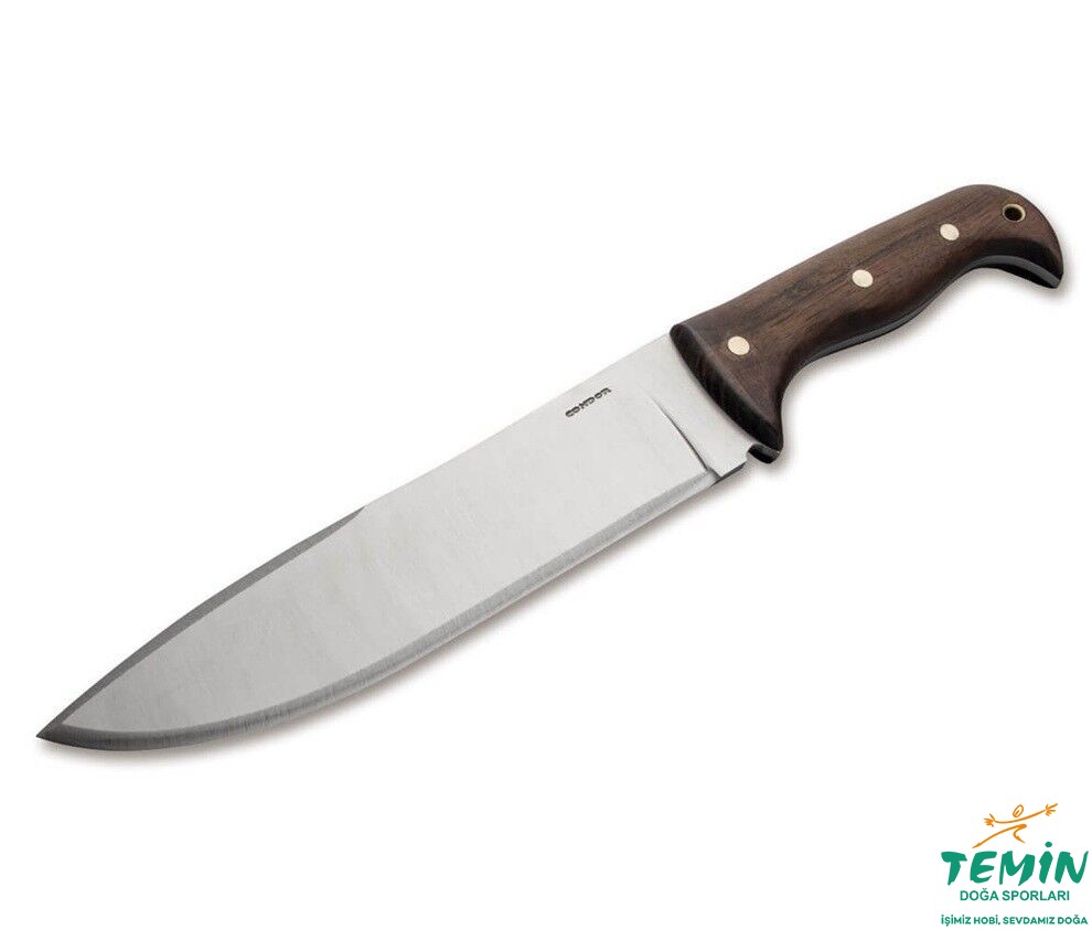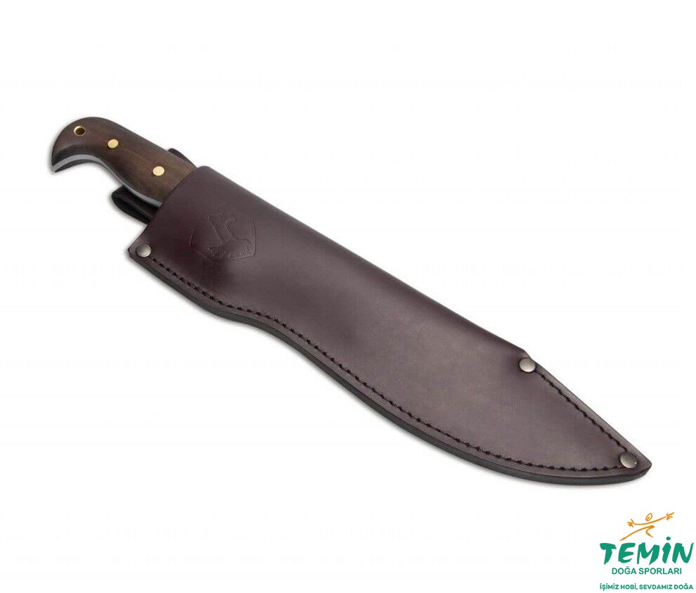 Bıçak, Alman 1075 Yüksek Karbonlu Çelikten yapılmıştır ve yaklaşık 56-58 Rockwell sertliğine kadar ısıl işlem görmüş ve tavlanmıştır. Kenarları elle işlenmiş ve jilet keskinliğinde parlatılmıştır. Sert ahşap saplar, Orta Amerika'nın Hickory benzeri ceviz ağaçlarından yapılmıştır. Pürüzsüz bir tutuşla tamamlanmıştır ve uzun dayanıklılığı ile bilinir. Yüksek kaliteli, ağır hizmet tipi, el yapımı deri kılıfı ve çalılıklarda veya ormanda ilerlerken aletin yoldan çıkmasını sağlayan döner kemer halkası içerir.