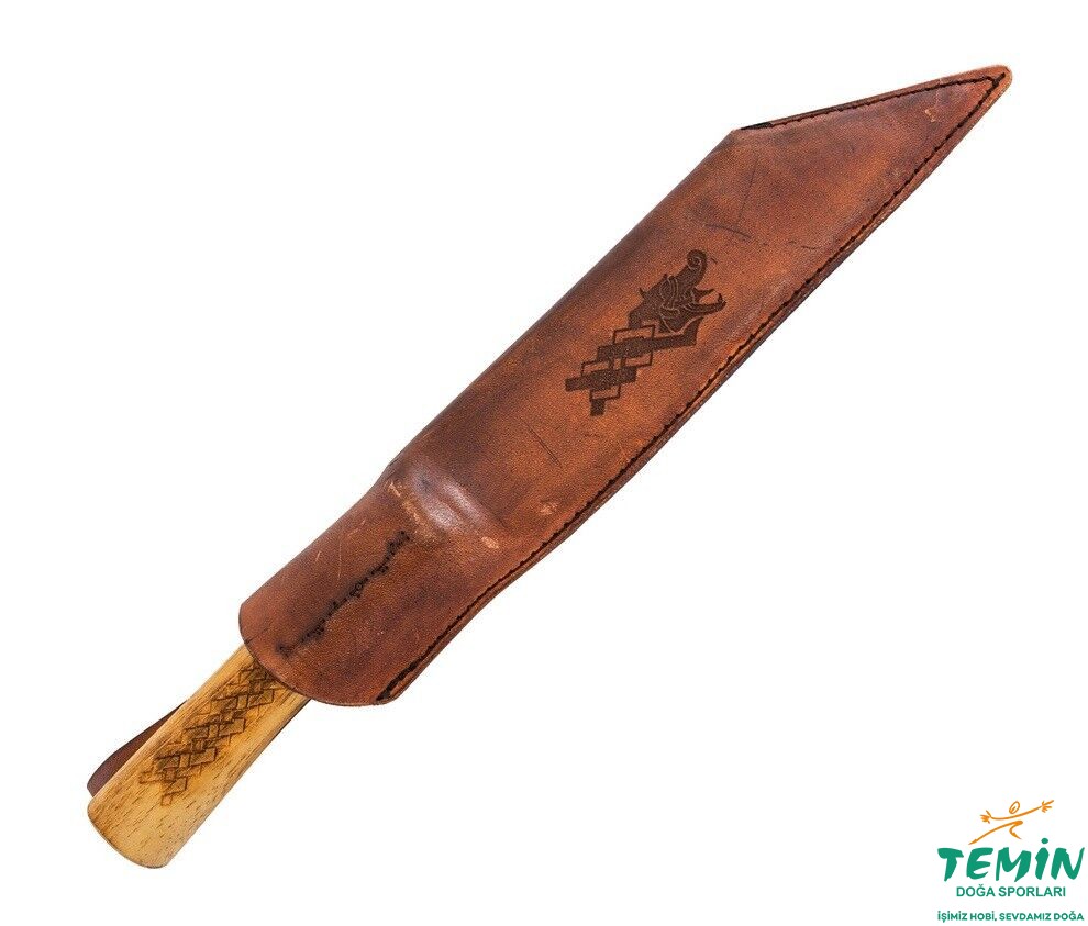 Sapın yan tarafı, İskandinav ejderhası lazer gravürü ile süslenmiştir. Viking tarzını yansıtmaktadır. Bıçakla bitmiyor. El yapımı deri kılıf da süslemelerle zenginleştirilmiştir. Kılıfın içi plastik bir tutucu ile güçlendirilmiştir. Böylece bıçağı kılıftan delmezsiniz.