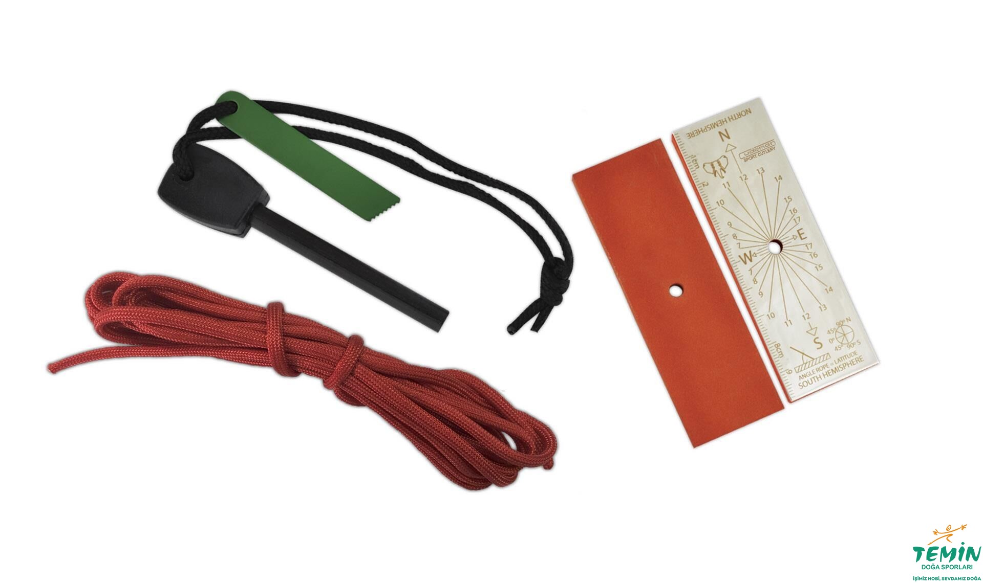 – Bileme taşı ve sinyal aynası (helyograf). Sinyal aynası yüzeyi, cetvel ve güneş saati olarak da kullanılabilmektedir.