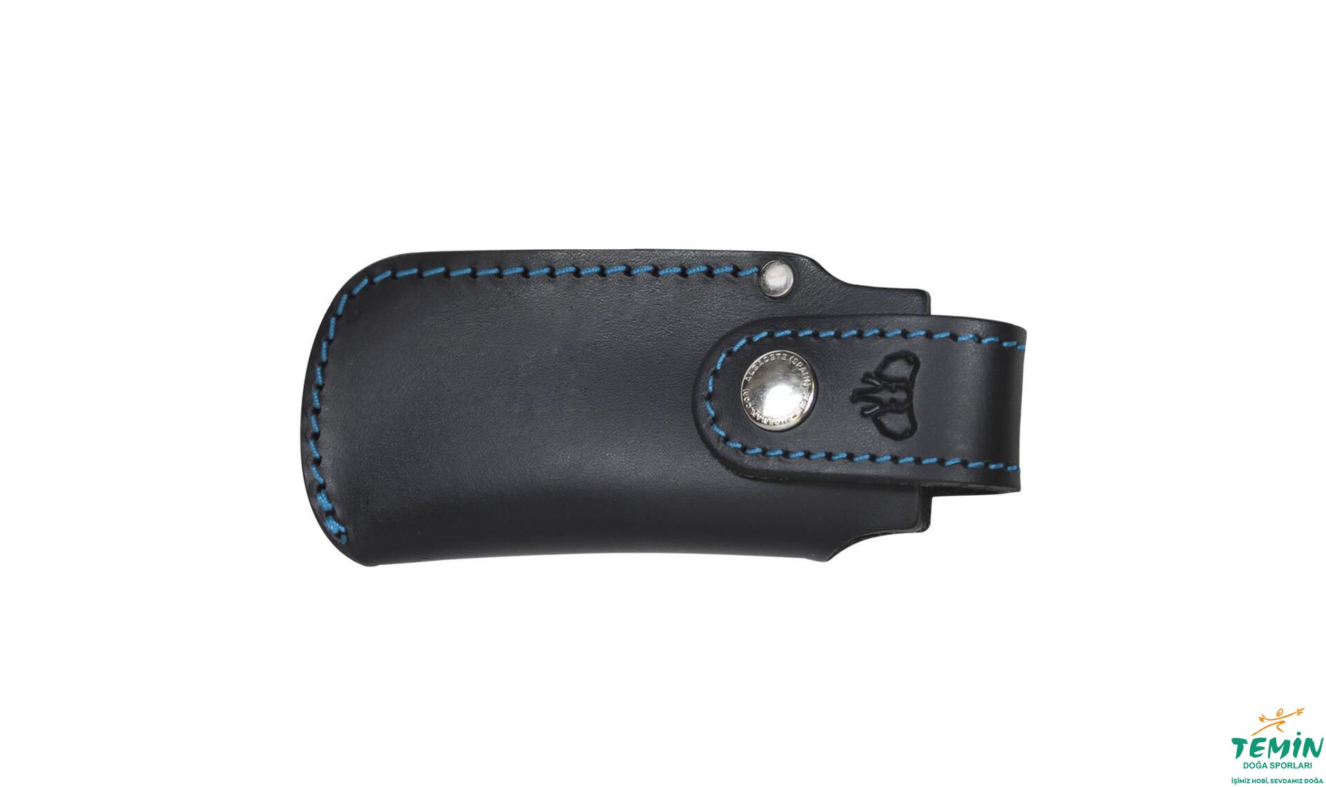 386-DF, siyah renkteki deri kılıfıyla sunulmaktadır. Kılıfın mavi renkteki dikişleri, çakının astarıyla uyumludur.
