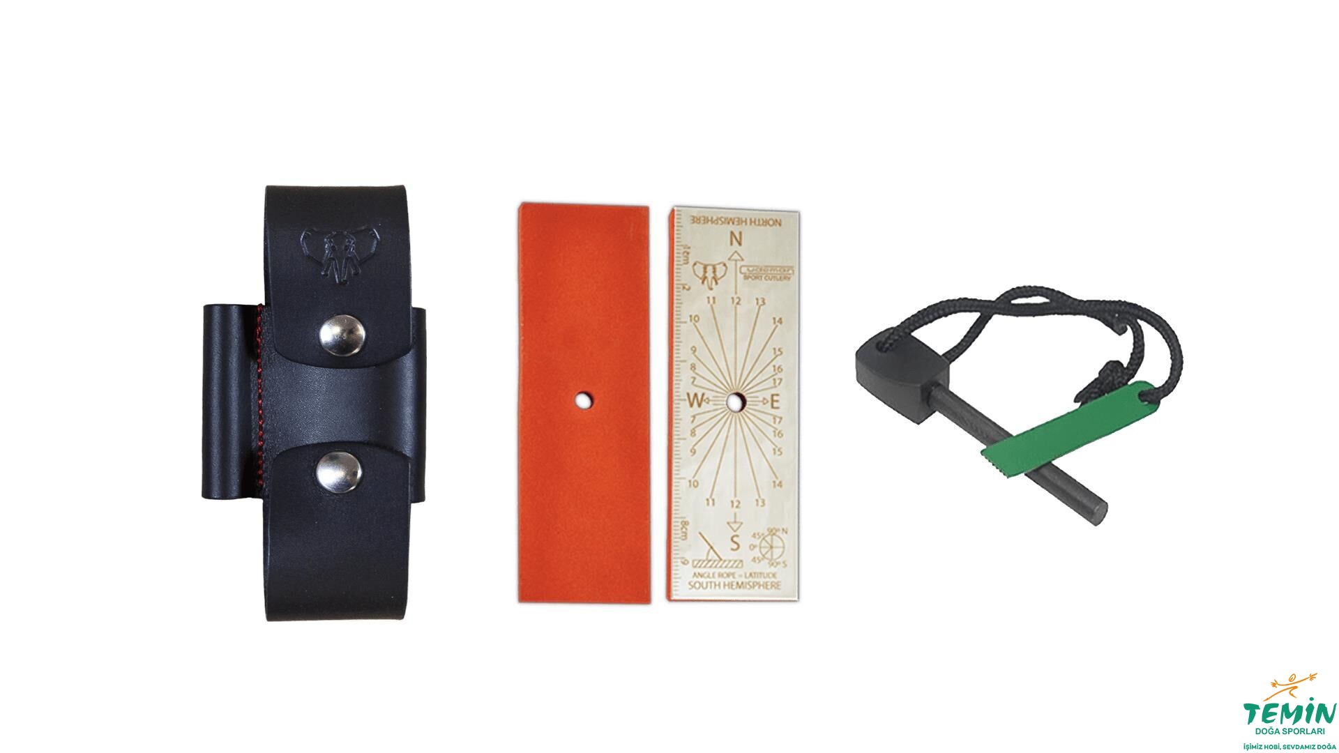– Bileme taşı (1200 kum) ve sinyal aynası (helyograf). Sinyal aynası yüzeyi, cetvel ve güneş saati olarak da kullanılabilmektedir.