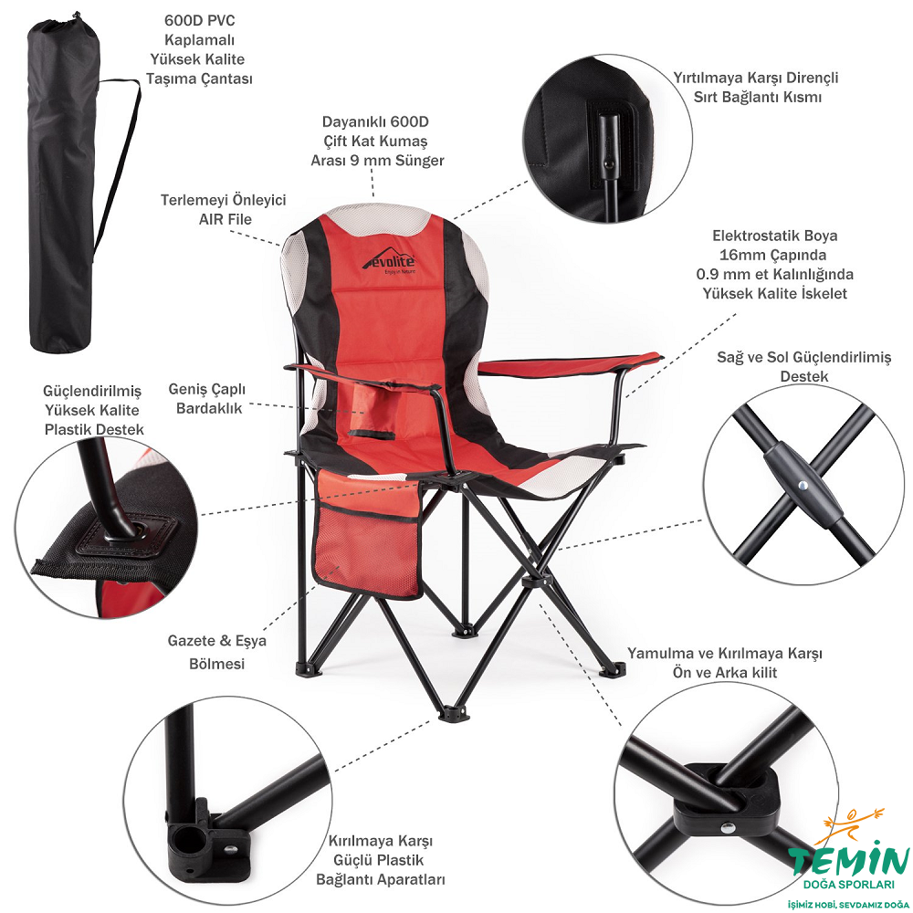 Evolite Nature Katlanabilir Kamp Koltuğu - Kırmızı