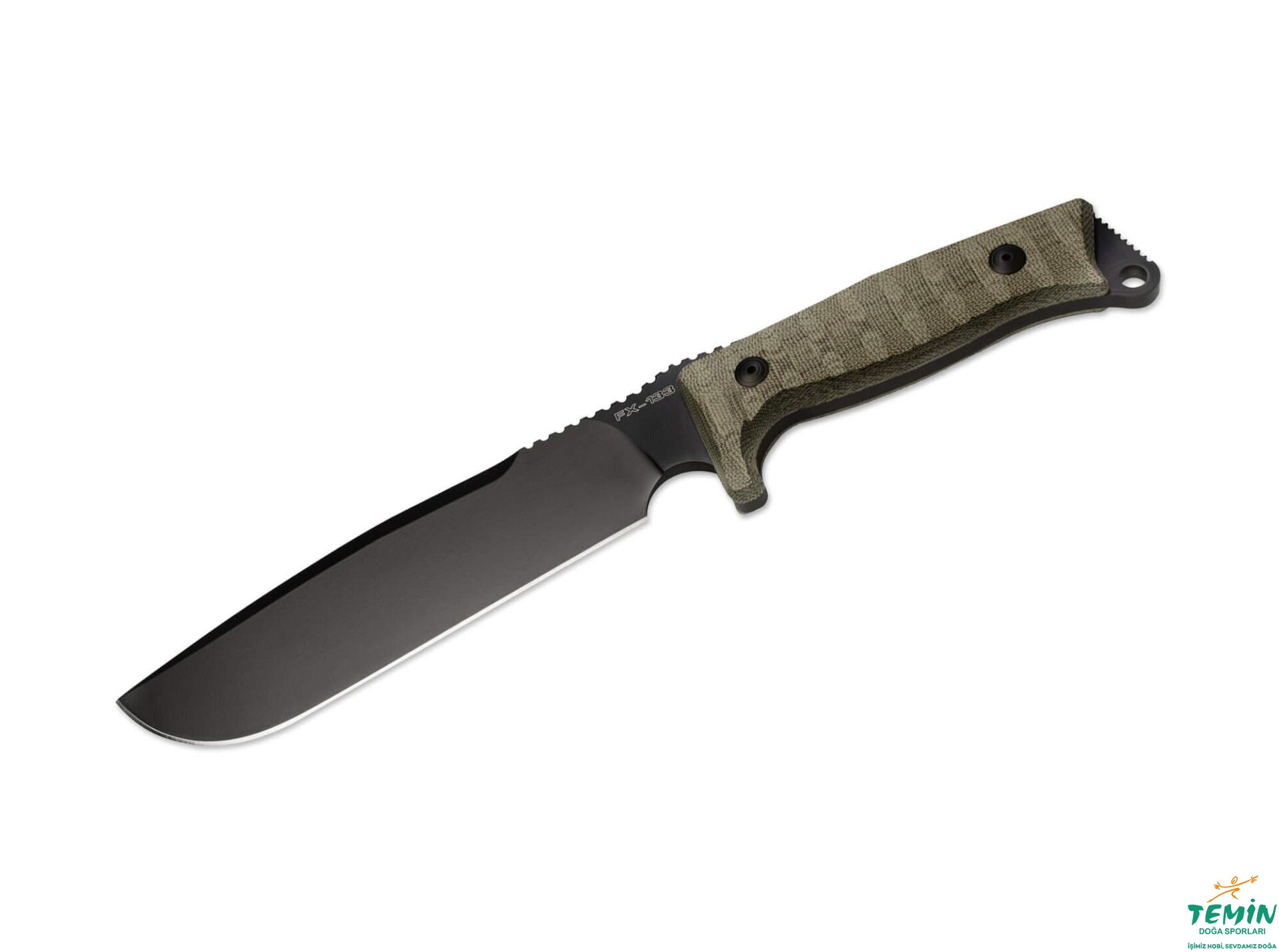Hâki renkli kanaviçe mikarta (canvas micarta) sap malzemesinin yerine takılmasında siyah renkli cıvatalardan faydalanılmıştır. Hem önünde hem de arkasında kavisleri bulunan sapın başarılı bir ergonomiye sahip olduğunu vurgulamak gerekir.