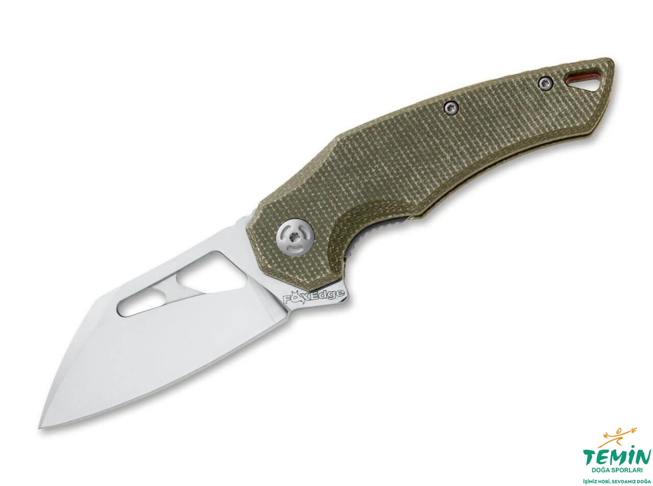 Sap dibine doğru kordon deliği (lanyard hole) de bulunan FoxEdge Atrax Micarta OD Green (FE-027), 420J2B çelikten imal edilen cep klipsi (çıkarılabilir) sayesinde kolaylıkla taşınabilmektedir.