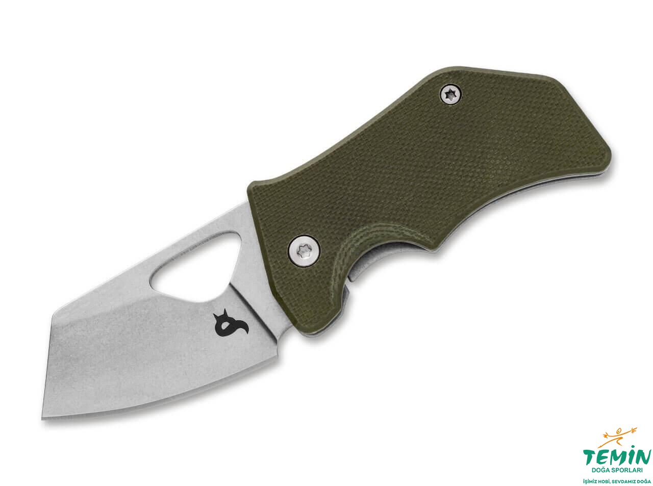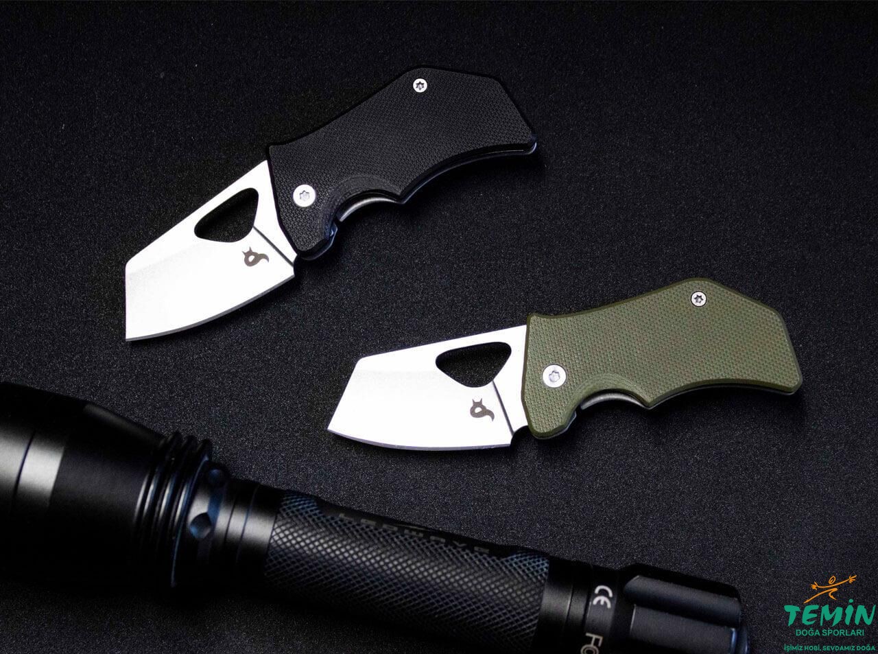 Kompakt aletleri tercih edenleri memnun edecek mini bir çakıdır. Küçük boyutlarına karşın sağlam ve güvenilir olan çakıyı hep yanınızda isteyeceksiniz ve bu da zor olmayacak. Özenle belirlenen köşeli hatlar, çakıyı işlevsel ve estetik kılmaktadır. Kavisli ağızlı modifiye sheepsfoot ya da ters tanto biçim, küçük çakıdan maksimum kesici alan elde etmeyi sağlamakta ve aynı zamanda çakıyı dayanıklı kılmaktadır. Bıçak çeliğinde kalite standardını belirlemiş paslanmaz 440C’den imal edilen namlunun ağız açımı, yüksek düz (high flat) biçimde yapılmıştır. Bu da çok yönlülükle sağlamlığı birleştiren bir unsurdur. Taşlanarak (stonewash) mat ve dayanıklı kılınan namlu, başparmak oyuğu (thumb hole) sayesinde istenen elle ve kolaylıkla açılabilmektedir. Çerçeve kilitli (frame lock) çakının gövdesi, çelikten imal edilmiştir. Sapın ön kanadına G10 (hâki) sap malzemesi takılarak sağlamlığın yanında iyi kavrama da garanti altına alınmıştır. BlackFox Kit OD Green (BF-752 OD), büyükçe ve sağlam cep klipsi (çıkarılabilir) sayesinde kolaylıkla taşınabilmektedir.