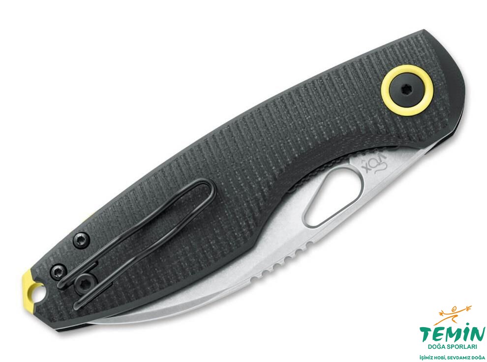 Yandan kilitli (linerlock) çakının sap kanatları G10 malzemeden imal edilmiştir. Değiştirilebilen cep klipsi sayesinde kolaylıkla taşınabilen Fox Knives Chilin, bez kesesi içinde ve fermuarlı deri kılıfıyla sunulmaktadır.