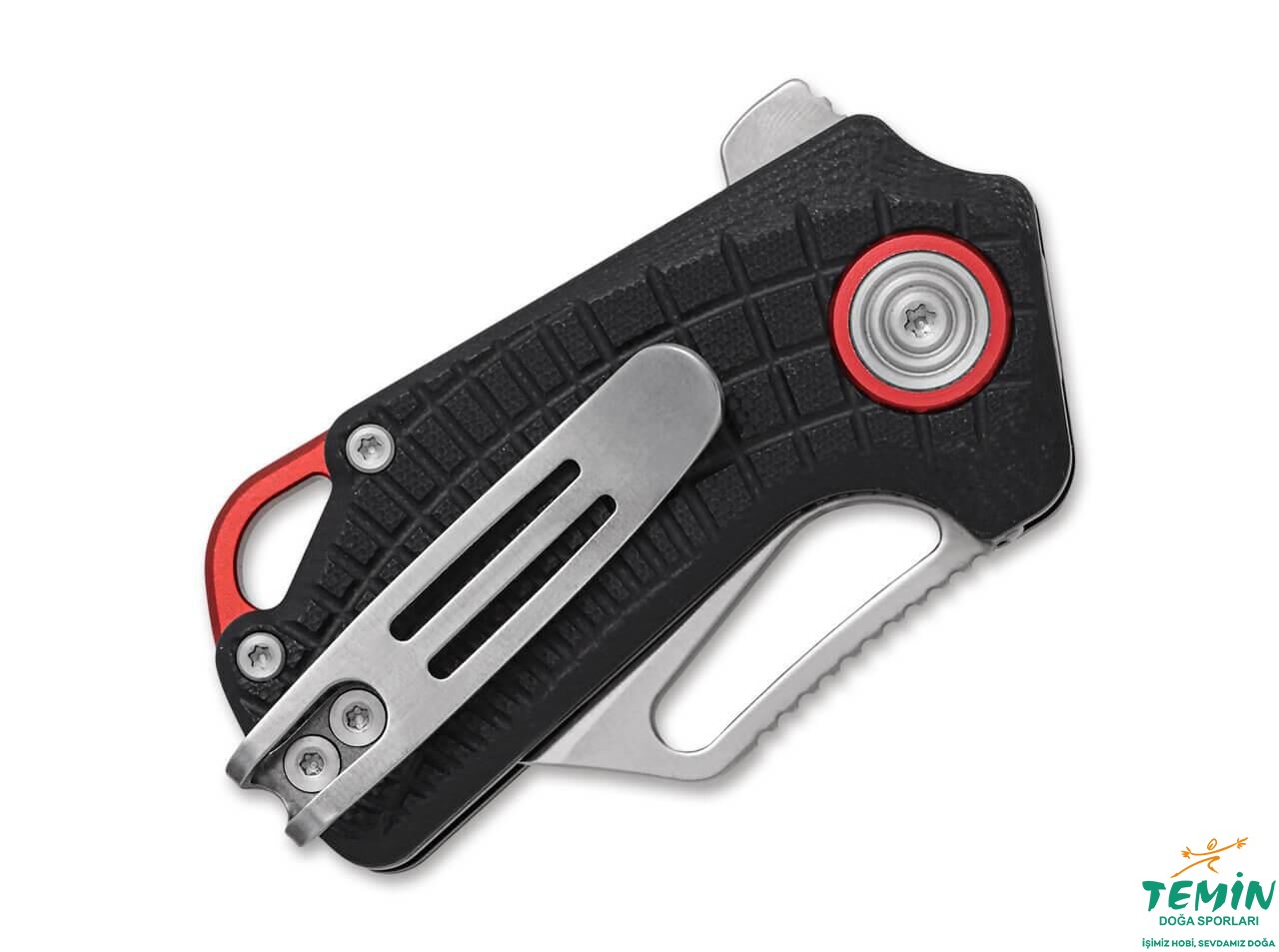Yandan kilitli (linerlock) çakının sap malzemesi, paslanmaz çelik astarlar üzerine takılan G10’dur. Zaten kaydırmaz yapısıyla bilinen G10 yüzeyine pürüzlü bir doku kazandırılarak iyi kavrama garanti altına alınmıştır. Bağlantı elemanı olarak paslanmaz çelik cıvatalar kullanılmıştır. Sap dibinin arkasında, sap malzemesinden azade kılınan alüminyum ara parça üzerinde kordon deliği (lanyard hole) bulunmaktadır.