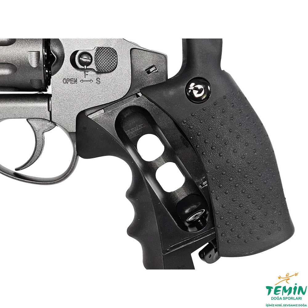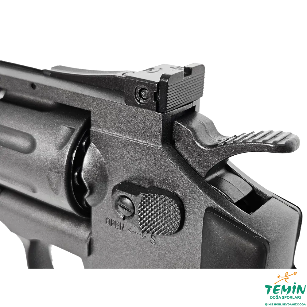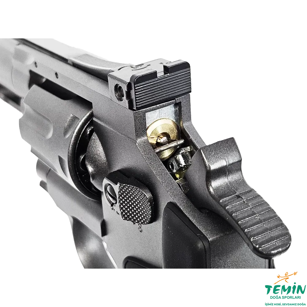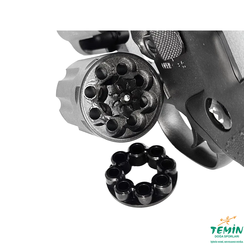 4.5 mm pellet kullanan yapısı, 8 atışlık döner şarjörü ve yivli çelik namlusu sayesinde hem hedef atışında hem de keyifli plinking kullanımında tatmin edici bir revolver karakteri sunar.