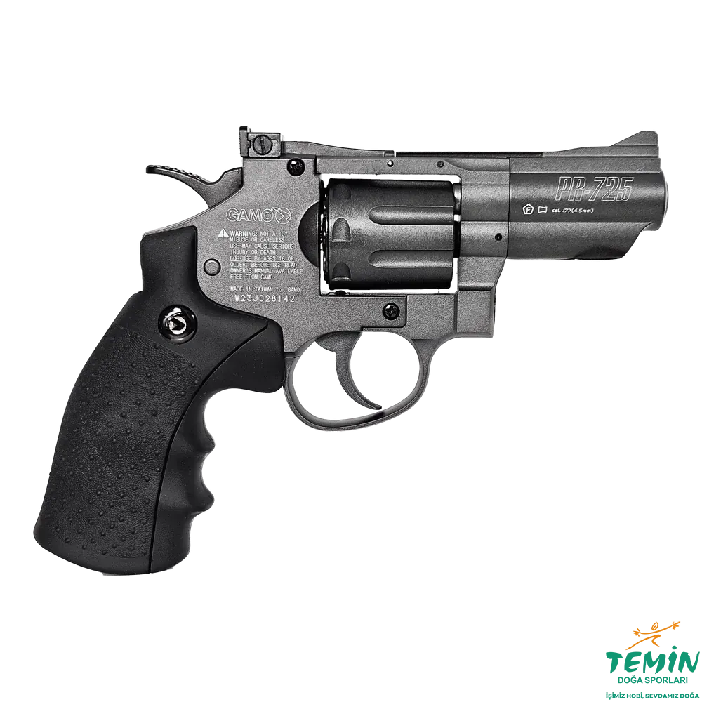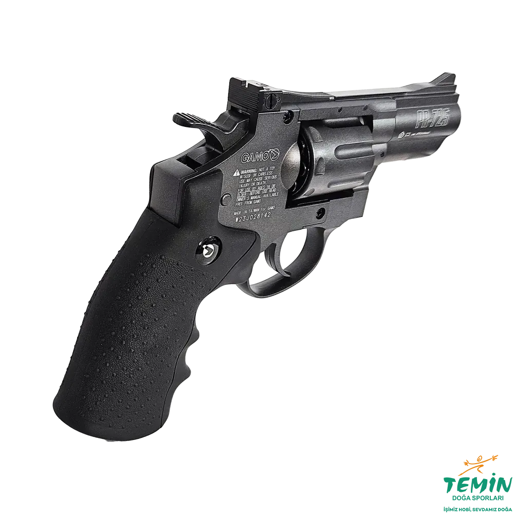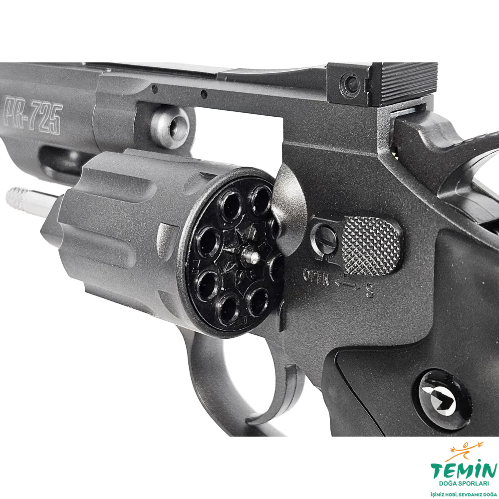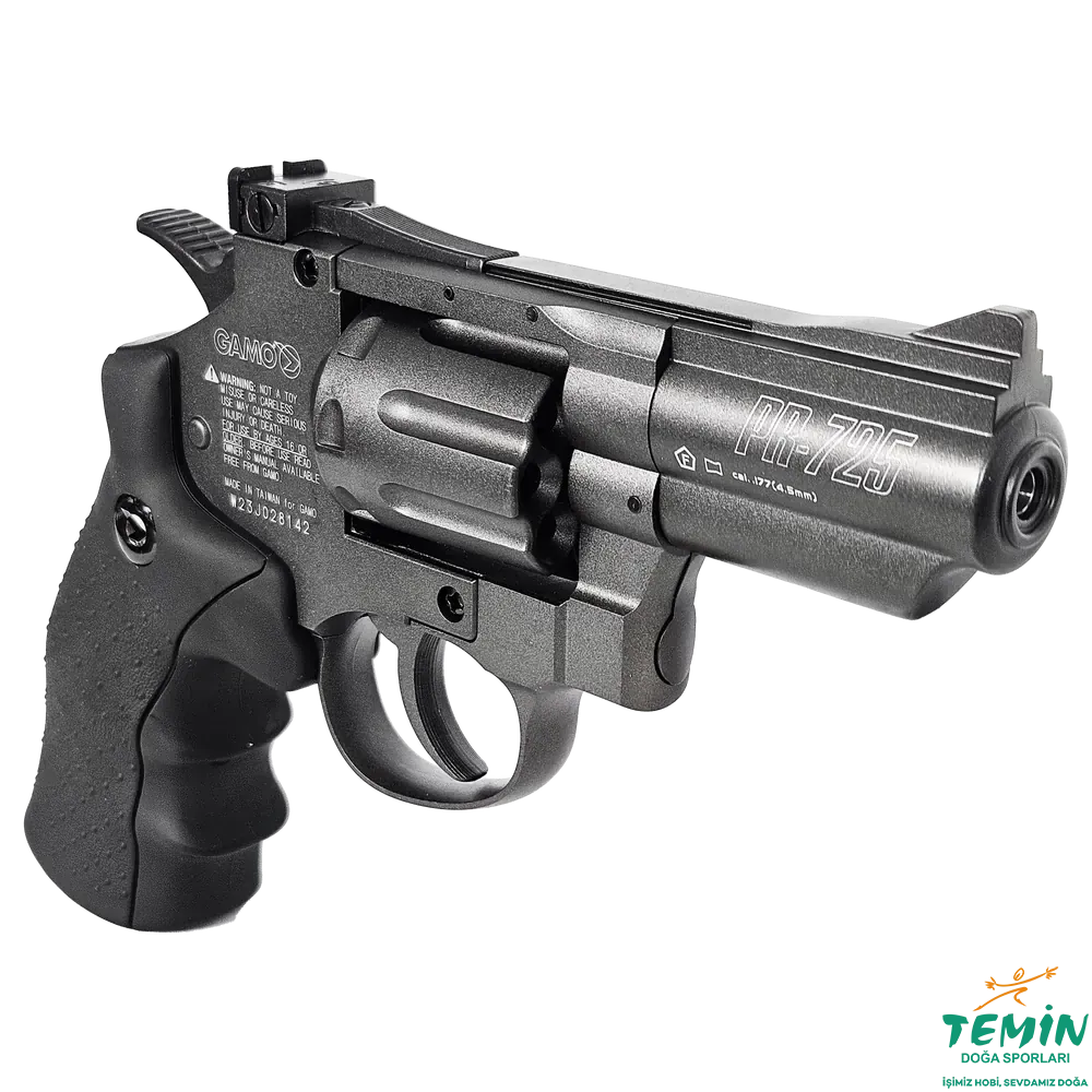 Gamo PR-725 Revolver, pellet atan CO2 revolver sınıfında gerçekçilik hissini öne çıkaran modellerden biridir.