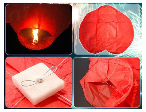 Balon kısmı kağıttır, sıcak hava sağlamak için yanan özel mumu paket içeriğindedir. Tamamen kullanıma hazırdır.