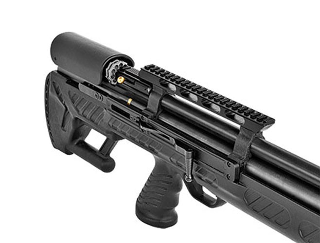 Bullpup tasarım, yandan kurmalı, kuru hava tüplü, pcp havalı tüfek