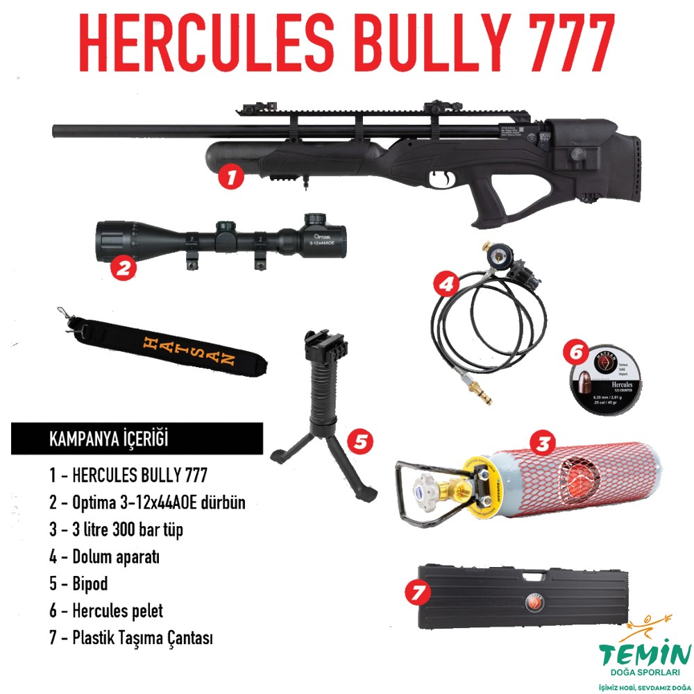Hatsan, klasik Hercules serisinin gücünü daha dengeli, daha kompakt ve daha modern bir platforma taşımak için Hercules Bully serisini geliştirdi. Hercules Bully 777 ise bu serinin;