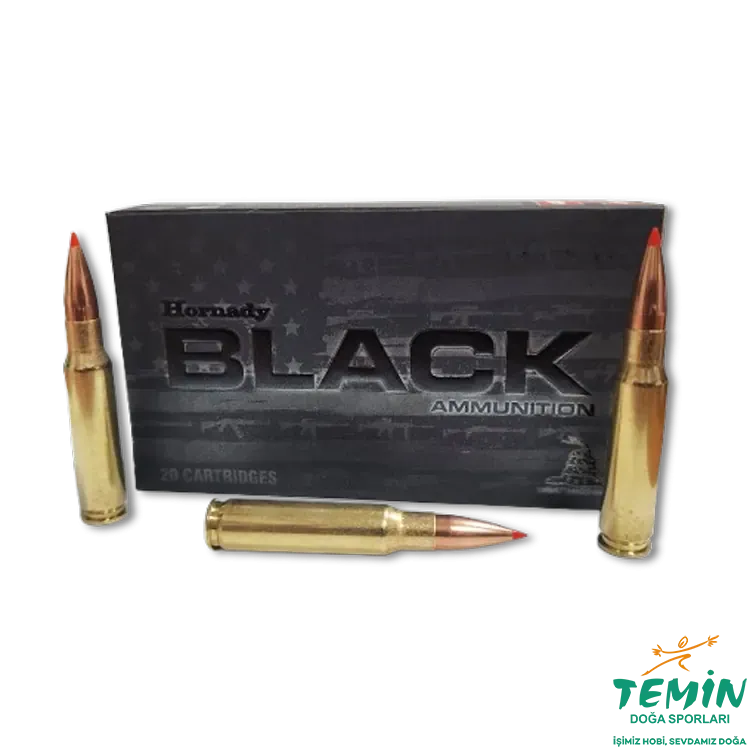 Hornady BLACK .308 Win 168 gr A-MAX, poligon ve hassas atış odağında; farklı platformlarda (bolt/yarı otomatik vb.) sorunsuz besleme ve tutarlı performans hedefleyen match karakterli bir fişektir.