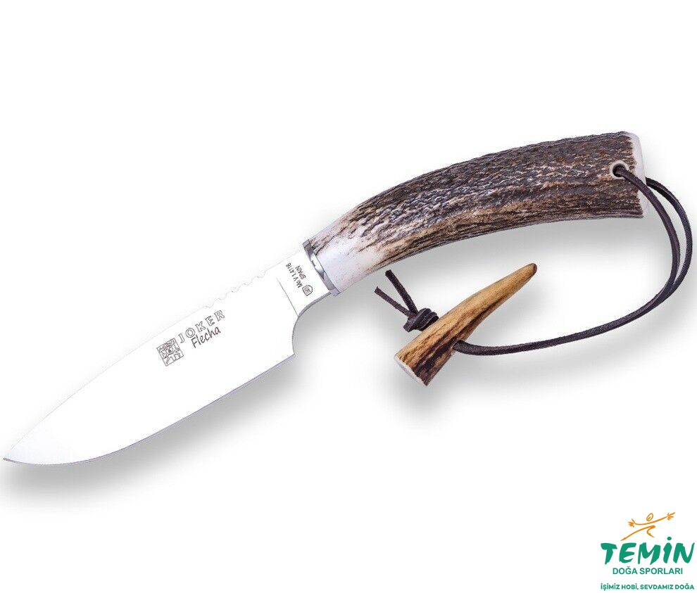 Joker Flecha Av Bıçağı, Albacete (İspanya) Menşe Damgası altında üretilmiştir. Av malzemeleriniz için ideal bir av bıçağı olmasının yanı sıra kampçılık, yürüyüş, hayatta kalma, bushcraft vb. için de çok kullanışlıdır. Joker Flecha bıçağı, 12,5 cm bıçak namlu uzunluğu, 3,1 cm bıçak genişliği ve 3,5 mm et kalınlığı ile Mova 1.4116 paslanmaz çelikten yapılmıştır. Sap uzunluğu 12,5 cm'dir ve geyik boynuzundan yapılmıştır. Joker Flecha bıçağına kahverengi renkte birinci sınıf bir deri kılıf eşlik eder.