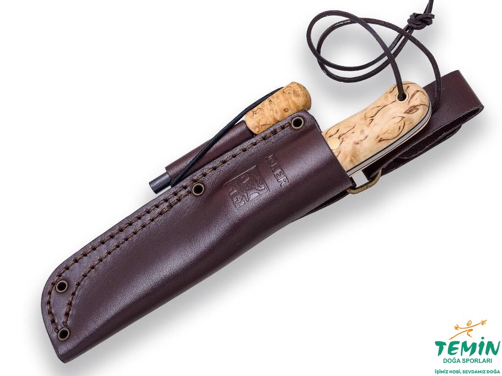 Bıçağın çeliği, kaliteli bir paslanmaz olan 14C28N’dir. İsveç Sandvik firması tarafından bıçak çeliği olarak üretilen bu malzeme, ince karbür yapısıyla da öne çıkmaktadır. 27 mm enindeki namlunun et kalınlığı 3,7 mm’dir. Keskin kenarın altındaki minik çentik, kesmeye saplayarak başlamaya hizmet etmektedir. Tam kuyruklu (full tang) bu dayanıklı bıçakta kısa tutulan koruyucu tırnak (quillon), çalışma konforunu bozmayacak ama elleri keskin kenardan koruyacak uzunluktadır.