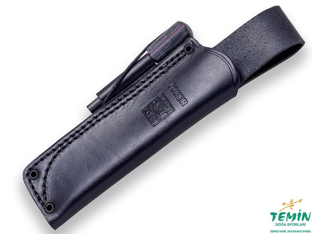 Joker CM111-P, kırmızı astarlı, siyah kanaviçe mikarta (black canvas micarta) sap malzemesine sahiptir. Kanaviçe mikarta, keten (linen) mikartaya göre daha geniş gözenekli olup daha kaba ve kavranabilir yapıdadır. Sağlam bir sap malzemesi olan Mikarta hem suya hem de ateşe dayanıklıdır ve ıslak koşullarda bile iyi kavranabilmektedir. Üzerinde üç boyutlu çalışılan ve ön kısmının ortası ovalleşen sapa, dalgalı bir form kazandırılmıştır. Yani sap malzemesinin başlangıç, bitiş ve orta kısmı kalındır. Bazı üreticilerin, gitarın bırakacağı izden esinlenerek, ‘‘gitar biçimi’’ olarak tarif ettiği bu dalgalı yapı; konforlu ve sağlam bir kavrayışa olanak tanımaktadır. Sapın şekillendirilmesiyle elde edilen arka koruyucu tırnak (rear quillon) da sapın elden kaçmamasına yardımcıdır. Sap malzemesinin kuyruğa sabitlenmesinde pimlerden faydalanılmıştır. En son bağlantı elemanı olarak boru pim kullanılmasıyla, güçlü bir kordon deliği de elde edilmiştir.