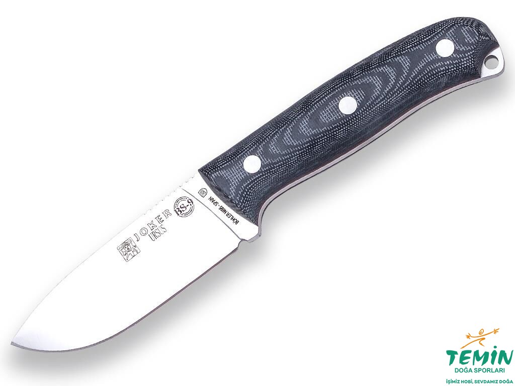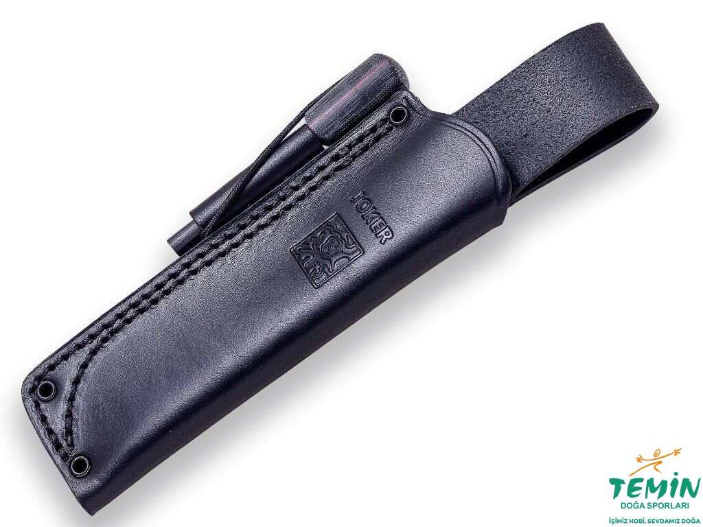 Tam kuyruklu (full tang) sağlam bir bıçak olan Joker CM116-P, kırmızı astarlı, siyah kanaviçe mikarta (black canvas micarta) sap malzemesine sahiptir. Kanaviçe mikarta, keten (linen) mikartaya göre daha geniş gözenekli olup daha kaba ve kavranabilir yapıdadır. Sağlam bir sap malzemesi olan Mikarta hem suya hem de ateşe dayanıklıdır ve ıslak koşullarda bile iyi kavranabilmektedir. Üzerinde üç boyutlu çalışılan ve ön kısmının ortası ovalleşen sapa, dalgalı bir form kazandırılmıştır. Yani sap malzemesinin başlangıç, bitiş ve orta kısmı kalındır. Bazı üreticilerin, gitarın bırakacağı izden esinlenerek, ‘‘gitar biçimi’’ olarak tarif ettiği bu dalgalı yapı; konforlu ve sağlam bir kavrayışa olanak tanımaktadır. Sap malzemesinin kuyruğa sabitlenmesinde pimlerden faydalanılmıştır. Sapın şekillendirilmesiyle elde edilen arka koruyucu tırnak (rear quillon) üzerinde kordon deliği açılmıştır. Sap malzemesinden azade kılınan bu kısmı, darbe vurmak için de kullanabilirsiniz.