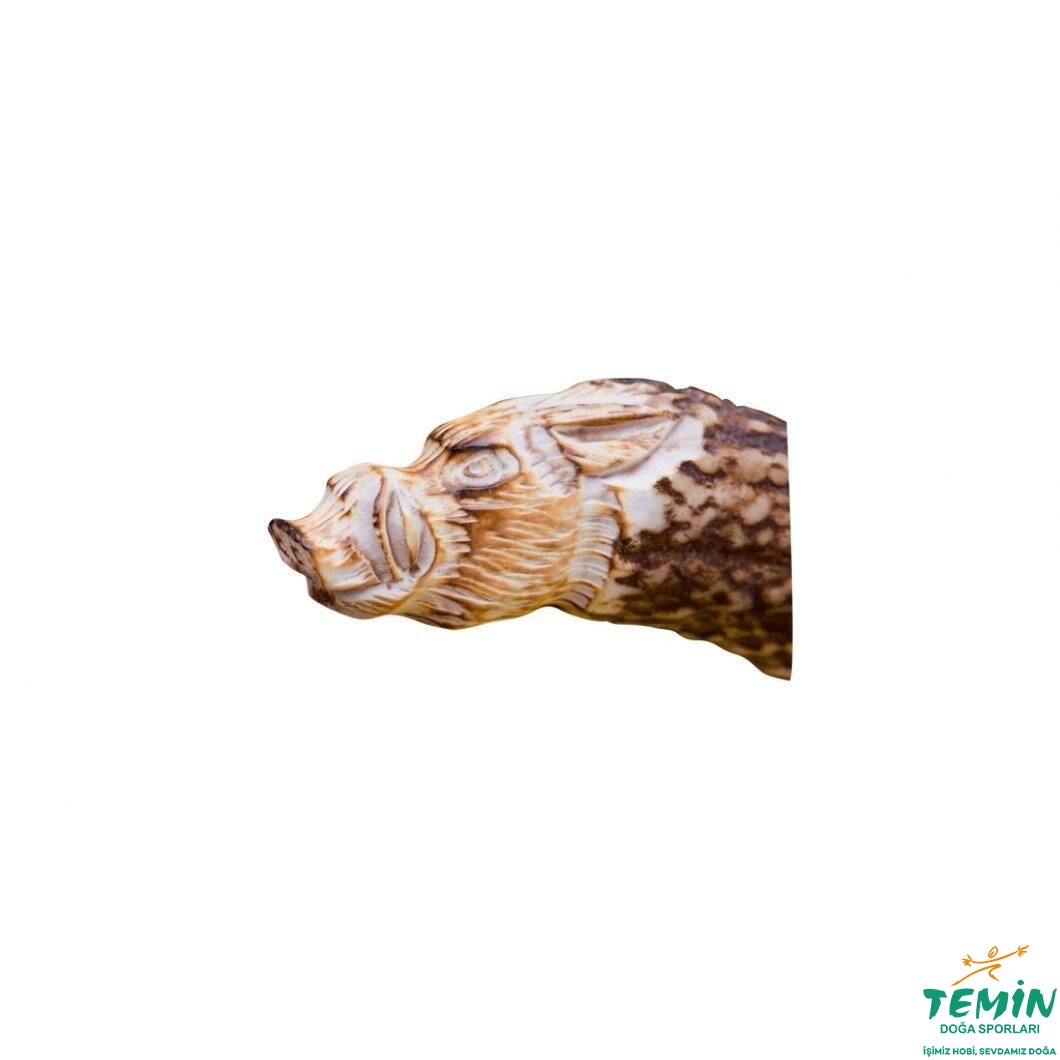 Paslanmaz çelikten imal edilen tek tırnaklı ince barçak, fazla yer işgal etmeden, güvenliğe katkı sunmaktadır. Sap malzemesi olarak geyik boynuzu kullanılmıştır. Estetik olan ve yalıtım da sağlayan gizli kuyruklu (hidden tang) bıçağın sapı, biçimi itibarıyla da iyi ve konforlu kavranmaktadır. Bıçağın estetiği ve kompozisyonu, sanatsal bir vurguyla tamamlanmıştır. Sapın dip kısmı, bir yaban domuzu kafası ortaya çıkaracak biçimde oyulmuştur.