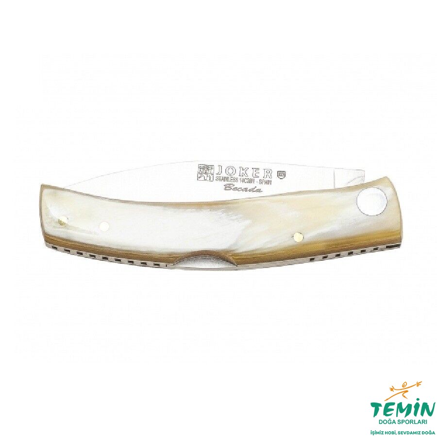 Joker Becada Çakı,Albacete menşeli el yapımı bir İspanyol çakısıdır ve doğaya yaptığınız gezilerde yanınızda taşımanız için mükemmeldir. İster doğada ister başka bir yerde olun, Joker Becada çakı her durumda size büyük bir yardımcı olacaktır. 8 cm namlu uzunluğuna sahip 14C28N paslanmaz çelikten üretilmiştir. Arka kilitli yapıya sahiptir. Saplara gelince, zeytin ağacı, ceviz, geyik boynuzu, boğa boynuzu veya manda boynuzu gibi farklı kaplamalar arasından seçim yapabilirsiniz. Bu bıçağımız ise boğa boynuzu olarak sizlere sunulur. Joker Becada çakısının merkezi yapısı, ona büyük bir sağlamlık kazandıran ve onu sağlam ve dayanıklı bir çakı haline getiren paslanmaz çelikten yapılmıştır. Bu çakımız ise Bufalo Boynuzu olarak sizlere sunulur.