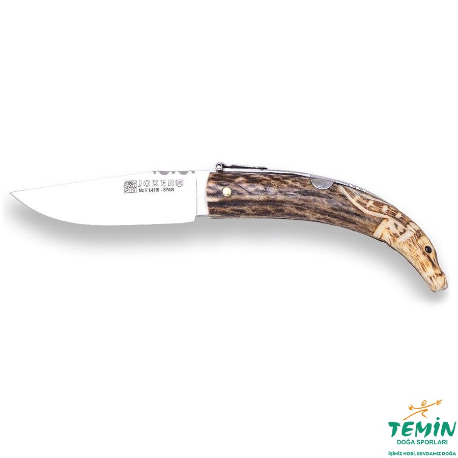 Joker NC141, (MOVA 1.4116) çelikten yapılmış 8,5 cm namlu uzunluğuna sahip geleneksel bir İspanyol Çakısıdır. Yabani erkek dağ keçisi motifli el oyması geyik boynuzu sapı ve benzersiz tokalı kilit mekanizmasıyla bilinir. Bu model, Joker Knives tarafından İspanya'da el yapımı olarak üretilen, açık hava etkinlikleri için tasarlanmış dayanıklı ve koleksiyonluk bir çakıdır.