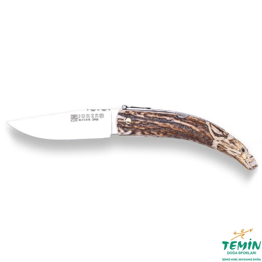 Joker NC142, yaban domuzu motifli, elle oyulmuş geyik boynuzu sapına sahip geleneksel bir çakıdır.4116 çelikten yapılmış 8 cm'lik namlu uzunluğu olan ve geleneksel toka kilit mekanizmasına sahip bir çakıdır. İspanya'da üretilen bu hafif ve kompakt çakı balıkçılık, kampçılık ve yürüyüş gibi açık hava etkinlikleri için idealdir aynı zamanda koleksiyon değeride oldukça yüksek bir çakıdır.