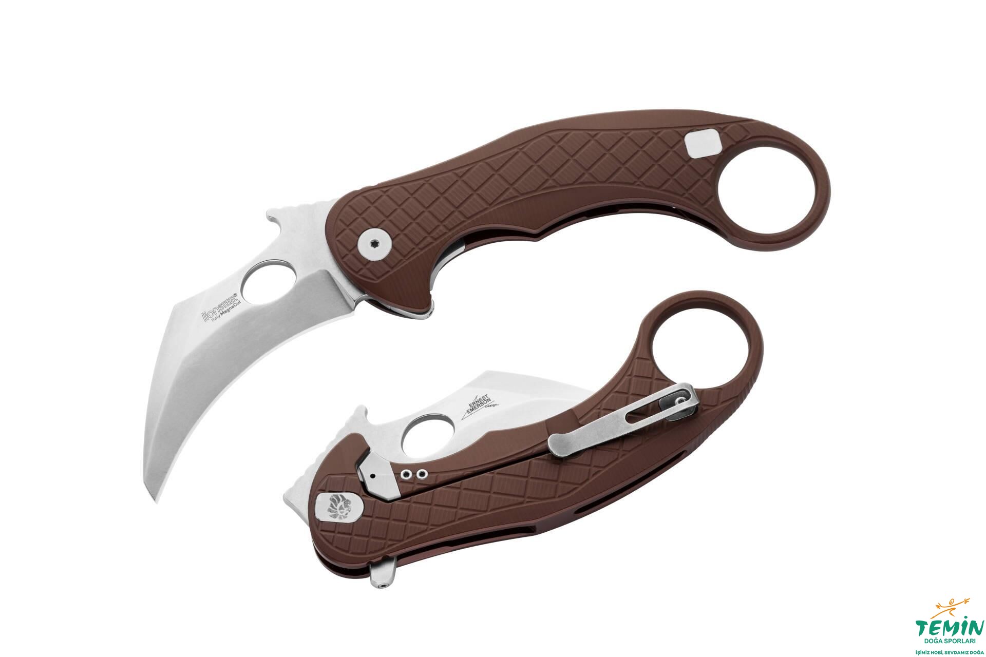 Çakılar değişik renkler kazandırılmış ergal (7075) alüminyum saplara sahip olarak sunulmuştur. Kilit görevi gören kanadın uç kısmına, aşınmayı önlemek için, çelik bir parça vidalanmıştır. Hem konforlu hem de iyi kavranan sap, namlu hareketlerini iyi kontrol etmeye yardımcıdır. Sap yüzeyleri üzerinde kavramaya yardımcı girinti ve çıkıntılar oluşturmak için damalı bir desende karar kılınmıştır. Artık hemen hemen her Karambit tarzı bıçakta karşılaşılan sap sonundaki parmak geçebilecek delik (retention ring) de yerini almıştır.