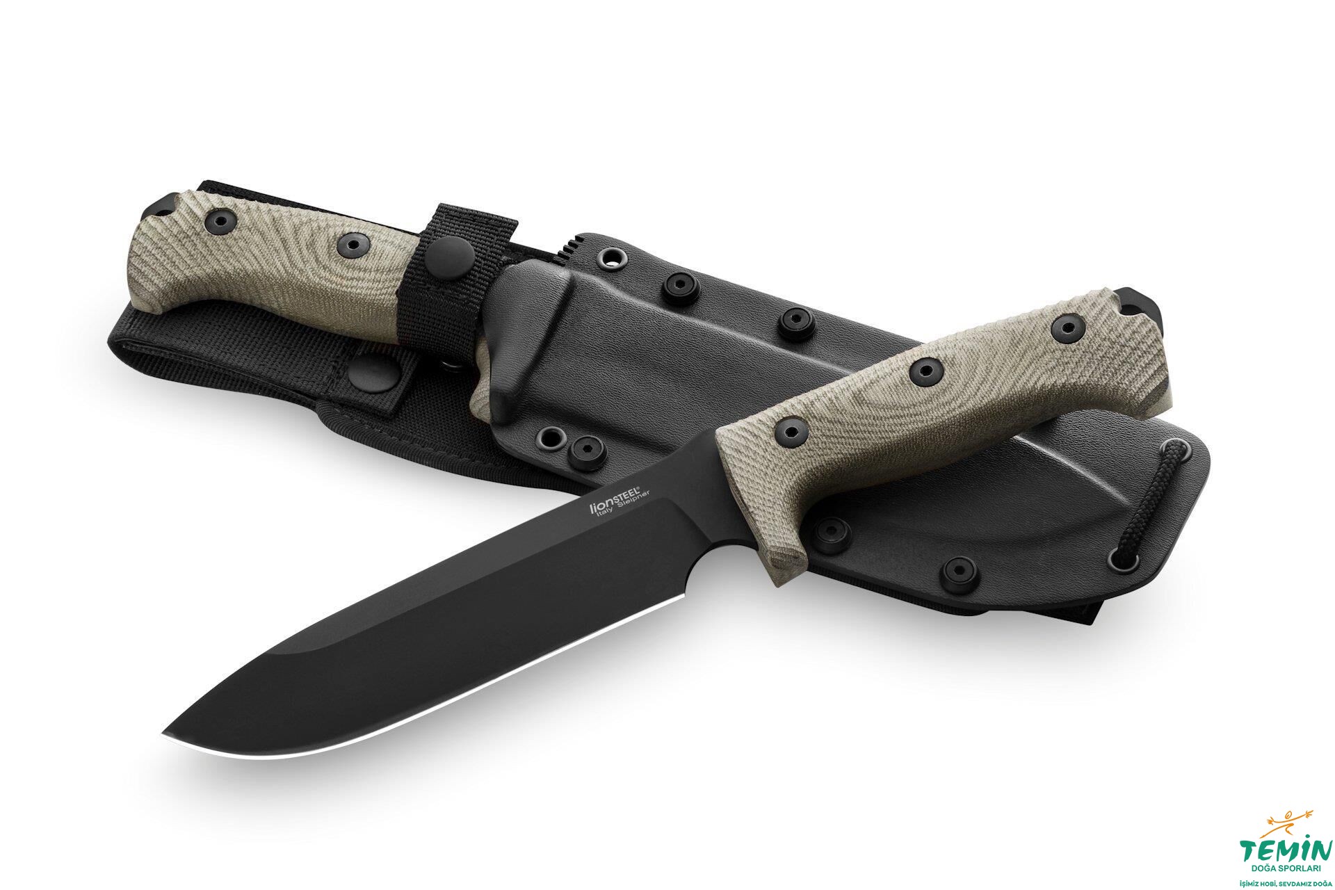 Bıçağın çeliği, dirençli yapısıyla takdir toplayan ve bilemesi çok zor olmayan Sleipner olarak seçilmiş. 5,5 mm kalınlıktaki çelik, siyah (Mil Spec) kaplamaya sahip. Namlunun yüksek düz ağız açımı (high flat grind), kendisini dayanıklı ve çok yönlü kılıyor. Geniş choil, işaret parmağı yuvası olarak hizmet verebilirken bıçağın ince işlerde de kontrollü kullanılmasına olanak tanıyor. Başparmak rampalarına (thumb ramp) da güvenli ve kontrollü kullanım için yer verilmiş.