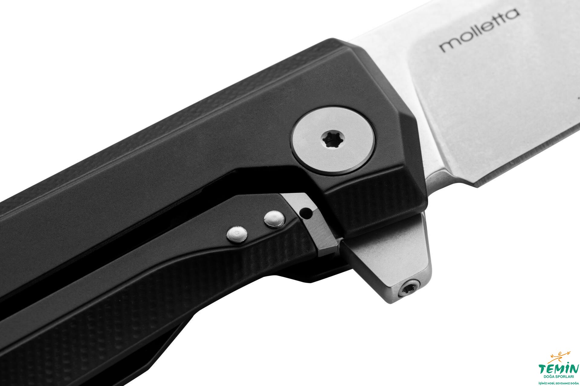 Myto, Lionsteel’in 2020 yılında ulaştığı noktayı göstermektedir. Yüksek teknolojiyle imal edilen, her gün yanınızda taşıyabileceğiniz bu ürün; ceplere mükemmel şekilde uymaktadır ve gündelik kullanım ihtiyaçlarınızın tamamını rahatlıkla karşılayabilecek niteliktedir. Büyük ilgi gören çakının alüminyum sap malzemesine sahip daha hesaplı versiyonları da satışa sunuldu… Hem geometrisi hem de kullanılan malzemeler açısından sağlam olan, zarafeti ve işlevselliği sadelikte birleştiren, bu gövde kilitli (frame lock) çakı; Molletta lakaplı Michele Pensato tarafından tasarlanmıştır. Molletta, bir gezgin ve arkeolog olarak açık havada geçirdiği zaman içinde, iyi bir bıçağın değerini anlamış ve nasıl olması gerektiği hakkında da tecrübe kazanmıştır. Tasarımlarını ileri düzey tasarım programları kullanarak yapmaktadır. Minimalist ve sade tasarıma sahip Myto’nun tüm versiyonlarının namluları, ''microclean'' sıfatına sahip, 3. nesil toz metal M390’dan imal edilmiştir. Bilyeli rulmanlar (çift taçlı) kullanılmasıyla namlu hareketleri pürüzsüzleşmiştir. Yüksek düz (high flat) ağız açımına sahip namlular, yuvarlak uç (drop point) yapıdadır. ‘‘ReF’’ sistemi (Removable Flipper system) sayesinde flipper kolları çıkarılabilir niteliktedir. Alüminyum sap malzemesi kullanılan Myto’larda, sapın her iki kanadı da alüminyumdan imal edilmiştir. Kilit görevi gören kanadın uç kısmına, aşınmayı önlemek için, çelik bir parça vidalanmıştır. Sap dibine ‘‘tungsten carbide’’ bir cam kırıcı entegre edilmiştir. Çakıdaki cam kırıcı, yekpare titanyum cep klipsini yerine sabitleyen somun olarak da görev yapmaktadır. Dolayısıyla, cep klipsi de çıkarılabilmektedir. Ara parça, siyah anodize edilen alüminyumdur. CNC ile işlenerek elde edilen ergonomik sapların dip kısmında, kordon deliği (lanyard hole) de bulunmaktadır. Sap yüzeylerinin düz yapısı, Myto’nun ceplere girip çıkmasını kolaylaştırmaktadır. Buna karşın, sapın kenarlarına doğru inceldiği kısımlar üzerine pürüzlü bir doku kazandırılmış ve çakının daha iyi kavranabilmesine katkıda bulunulmuştur. Alüminyum saplı Myto’ların, geri dönüştürülebilir kutuları içinde, garanti belgesi yanında bir de alyan bulacaksınız. Bu aletle çakı üzerindeki bağlantı elemanlarının ayarını yapabilirsiniz. Cam kırıcıyı kullanmak istemediğinizde onun yerine cep klipsinin somunu olarak kullanabileceğiniz yuvarlak başlı vida ve flipper çıkarıldığında vida yerinin boş kalmaması için kullanılacak küçük bir vida da pakete dâhildir.