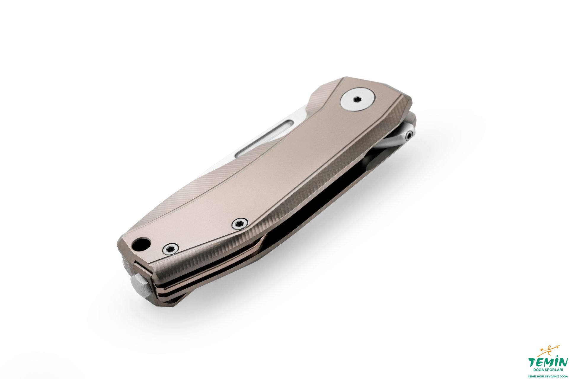 Titanyum kilitleme mekanizması, titanyum parçanın zamanla bıçağın açılıp kapanma nedeniyle aşınmaması için sertleştirilmiş çelik uçla güçlendirilmiştir.