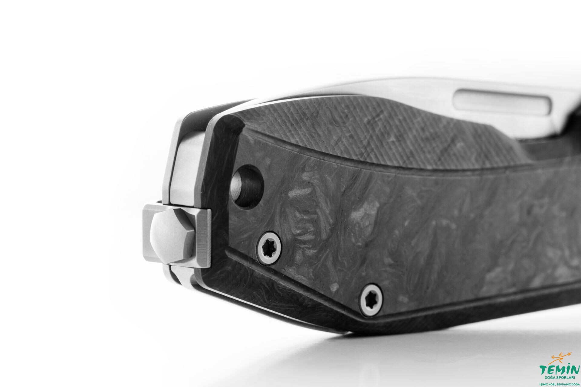 Titanyum kilitleme mekanizması, titanyum parçanın zamanla bıçağın açılıp kapanma nedeniyle aşınmaması için sertleştirilmiş çelik uçla güçlendirilmiştir.