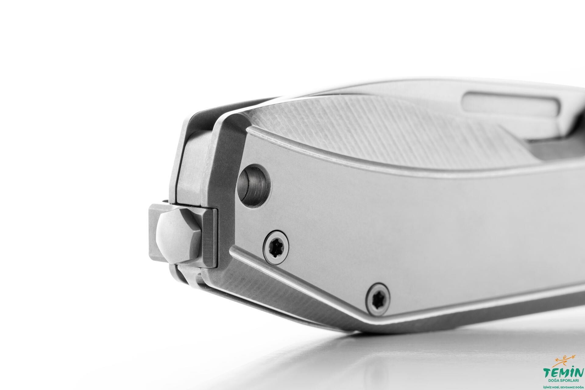 Titanyum kilitleme mekanizması, titanyum parçanın zamanla bıçağın açılıp kapanma nedeniyle aşınmaması için sertleştirilmiş çelik uçla güçlendirilmiştir.