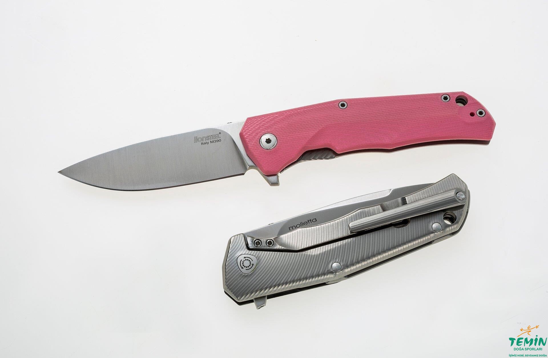 Bu modelde sapın bir kanadı, işlenerek pürüzlü bir doku kazandırılan pembe G10, gövde kilidi görevindeki diğer kanadı ise yine doku kazandırılmış titanyumdur. Böylelikle hafif, sağlam ve iyi kavranabilen bir yapı elde edilmiştir. Gövdenin kilit görevi gören kanadının uç kısmına, aşınmayı önlemek için, çelik bir parça vidalanmıştır. Ara parça da G10’dur.
