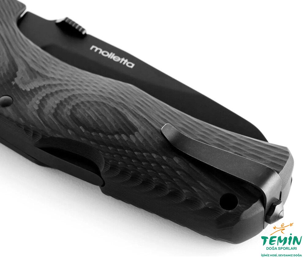 Molletta tarafından tasarlanan TM1, çakının kolay ve pürüzsüz bir şekilde açılıp kapanmasını sağlayan özel IKBS bilyalı rulman sistemi ile donatılmıştır. Klips sabitleme vidası, tungsten karbür cam kırıcı ile donatılmıştır.