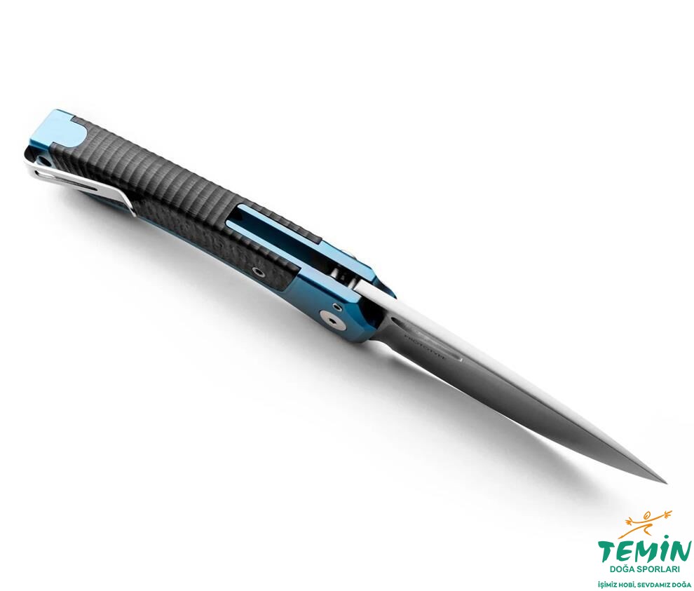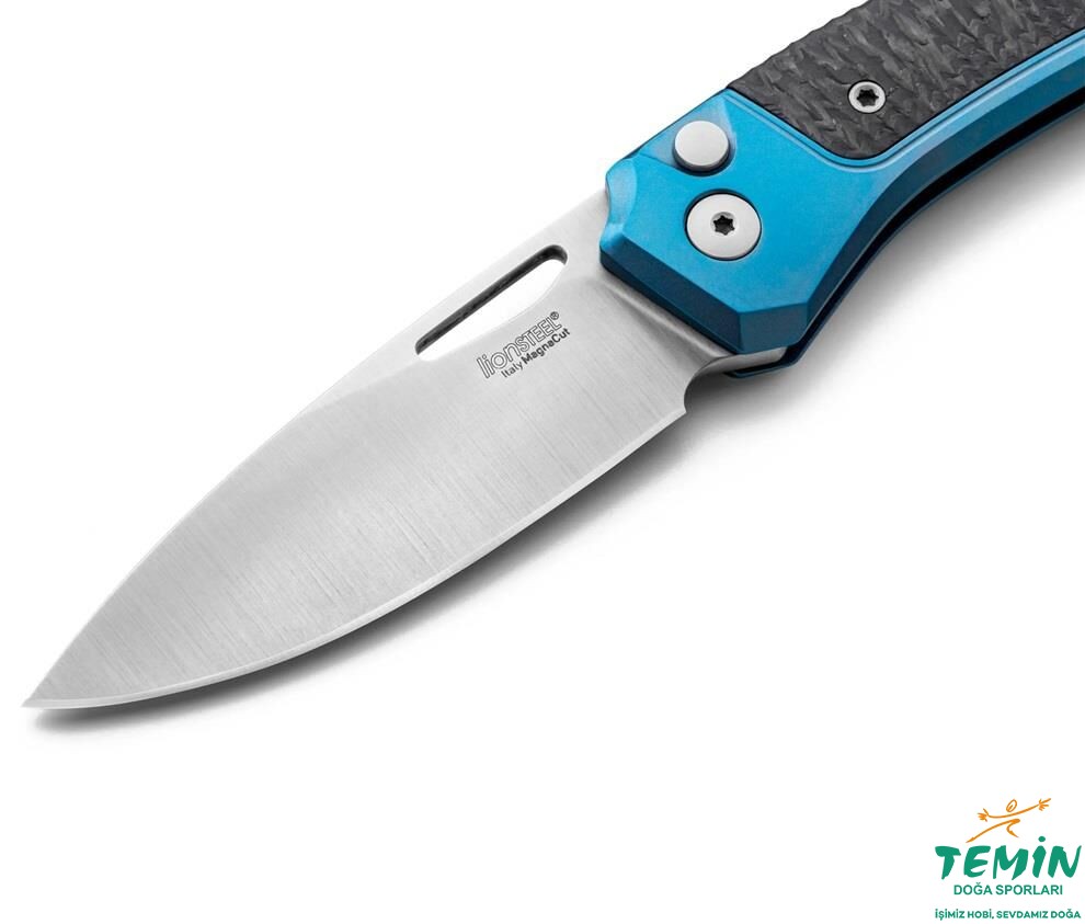 CPM MagnaCut çelik çakı saten kaplamalıdır, gövde titanyumdan yapılmıştır, kabza ise karbon fiber, Canvas veya G10 bloktan frezelenmiştir.
