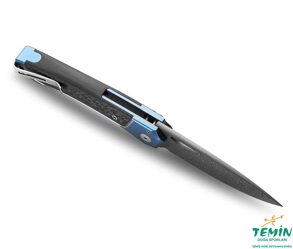 Saten kaplamalı CPM MagnaCut çelik çakı veya Chad Nichols “karışık” damask bıçak ile sunulmaktadır. Şase titanyumdan yapılırken, kabza karbon fiber, Canvas veya G10 bloktan frezelenmiştir.